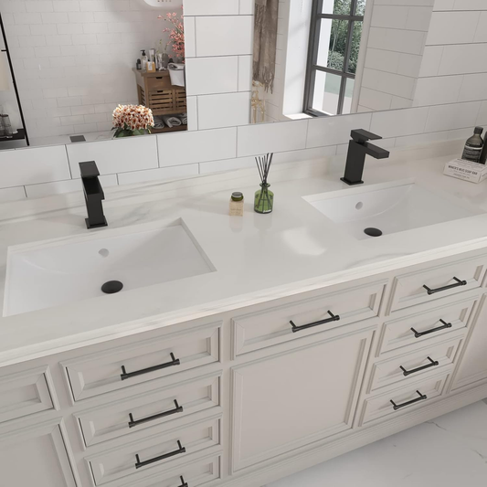 Single Handle Bathroom Faucet, Matte Black Single Hole Bathroom Faucet, Solid Brass Modern Bathroom Sink Faucet Basin Vanity Square Bathroom Faucet with Pop-up Drain & Water Supply Hoses