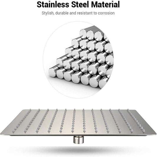 16 Inch Rain Shower Head, Square Ultra Thin 304 Stainless Steel High Pressure Shower Head,