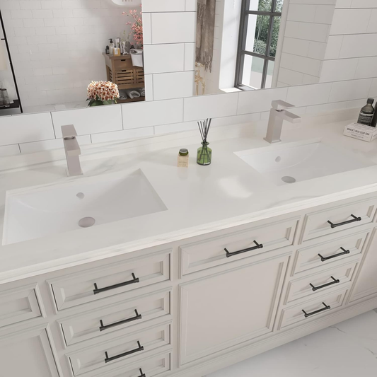 Single Handle Bathroom Faucet, Brushed Nickel Single Hole Bathroom Faucet, Solid Brass Modern Bathroom Sink Faucet Heavy Duty Vanity Square Bathroom Faucet with Pop-up Drain & Water Supply Hoses