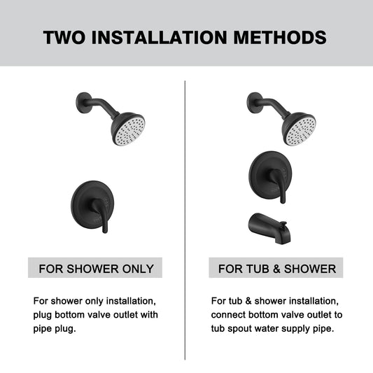 Matte Black 6 Inch Shower Faucet wih Tub Spout Combo