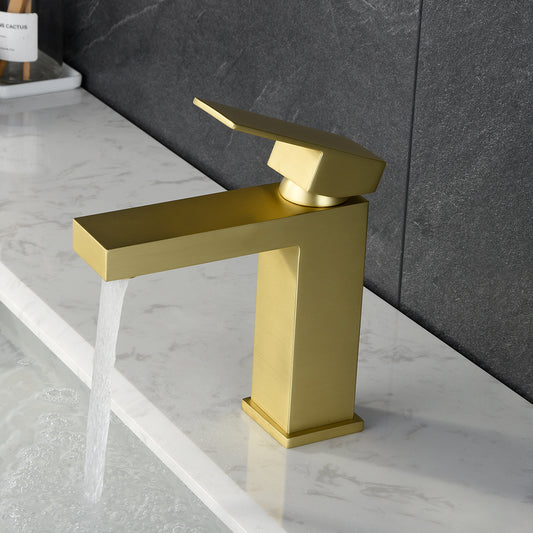 Gold Bathroom Faucet, Brushed Gold Faucet for Bathroom Sink, Gold Single Hole Bathroom Faucet Modern Single Handle Vanity Basin Faucet