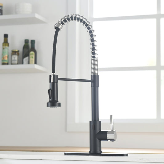 Commercial Kitchen Faucet Pull Down Sprayer Black and Nickel,Single Handle Kitchen Sink Faucet