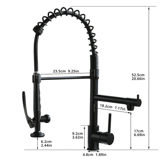 Heavy Duty Commercial Style Kitchen Sink Faucet, Single Handle Pre-Rinse Spring Sprayer Kitchen Faucets, High Arc Pull Down Matte Black Kitchen Faucet