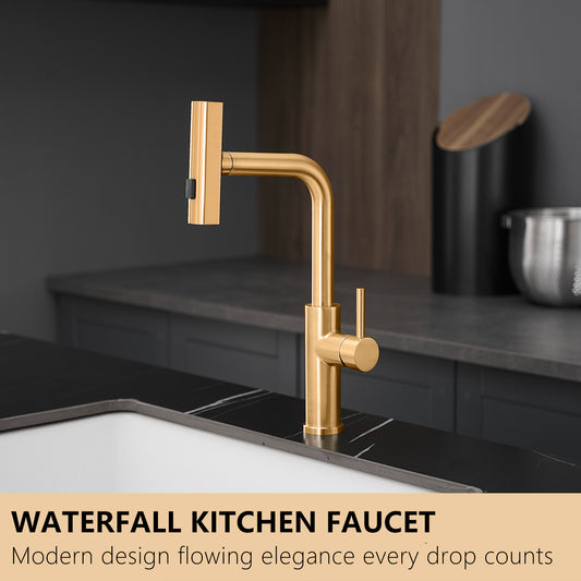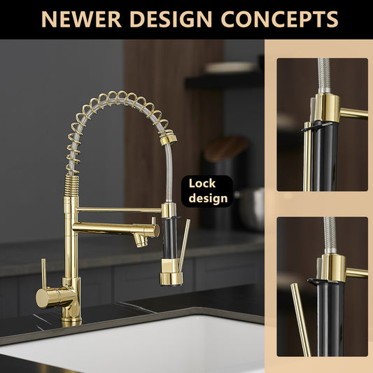 Commercial Kitchen Faucet with Pull Down Sprayer, Single Handle Single Lever Kitchen Sink Faucet Gold Faucet