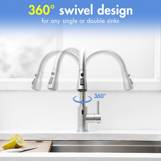 Touchless Kitchen Faucet, Hands Free Automatic Smart Kitchen Faucet, Stainless Steel Touchless Kitchen Faucet