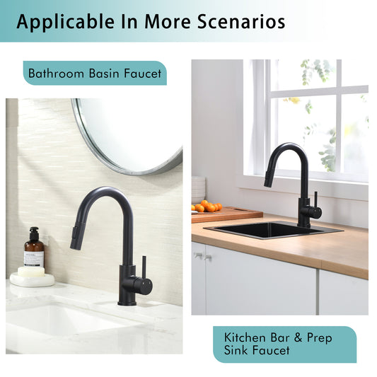 Sink Faucet, Black Kitchen Faucets with Pull Down Sprayer, Bathroom Sink Faucets Mini Bar Prep Faucet