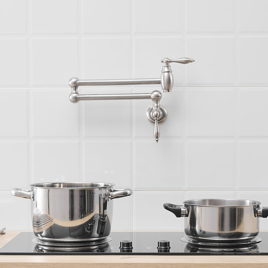 Pot Filler,Wall Mount Commercial Pot Filler Faucet,Brass Material Kitchen Folding Faucet,Coffee Machine Faucet with Stretchable Double Joint Swing Arms,Style A,Brushed Nickel