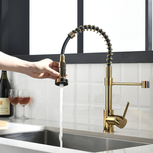 Commercial Black and Gold Kitchen Faucet with Pull Down Sprayer, Single Handle Single Lever Kitchen Sink Faucet