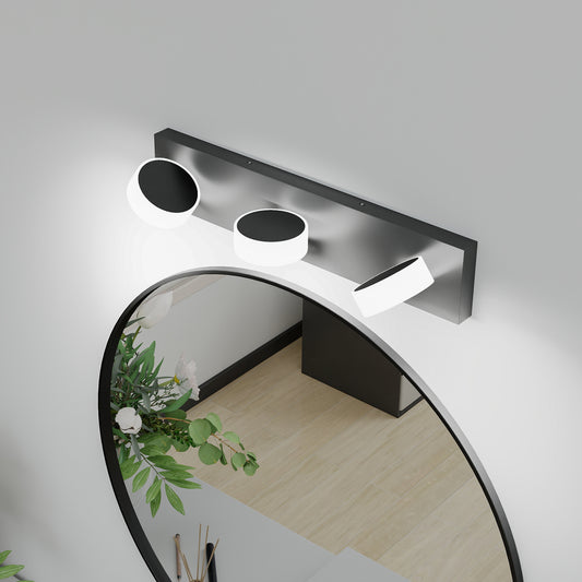 LED 21 Inch Vanity Light White Round Acrylic 3 Light with Black Base Bathroom Wall Lighting Fixture