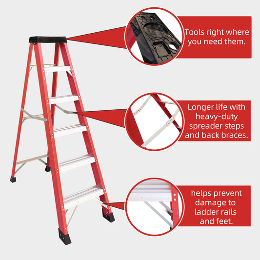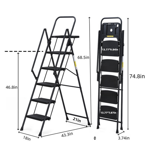 Folding step stool with bandwidth anti slip pedals and tool trays, lightweight and portable steel step stool, perfect for kitchen and home, indoor and outdoor use, sturdy steel steps (6 levels)