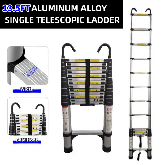 4.1-meter telescopic ladder, aluminum telescopic ladder, non slip feet, maximum capacity of 300 pounds, foldable ladder with hooks, suitable for RV or outdoor work