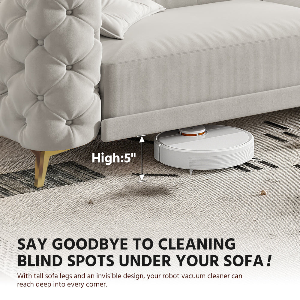 - Invisible sofa legs design:The invisible sofa legs design is adopted, and the appropriate height and space are reserved at the bottom of the sofa, so that the robotic vacuum cleaner can easily enter the area under the sofa for cleaning, without manual efforts to clean the hard-to-reach corners at the bottom, greatly simplifying the cleaning process and improving the convenience of cleaning.