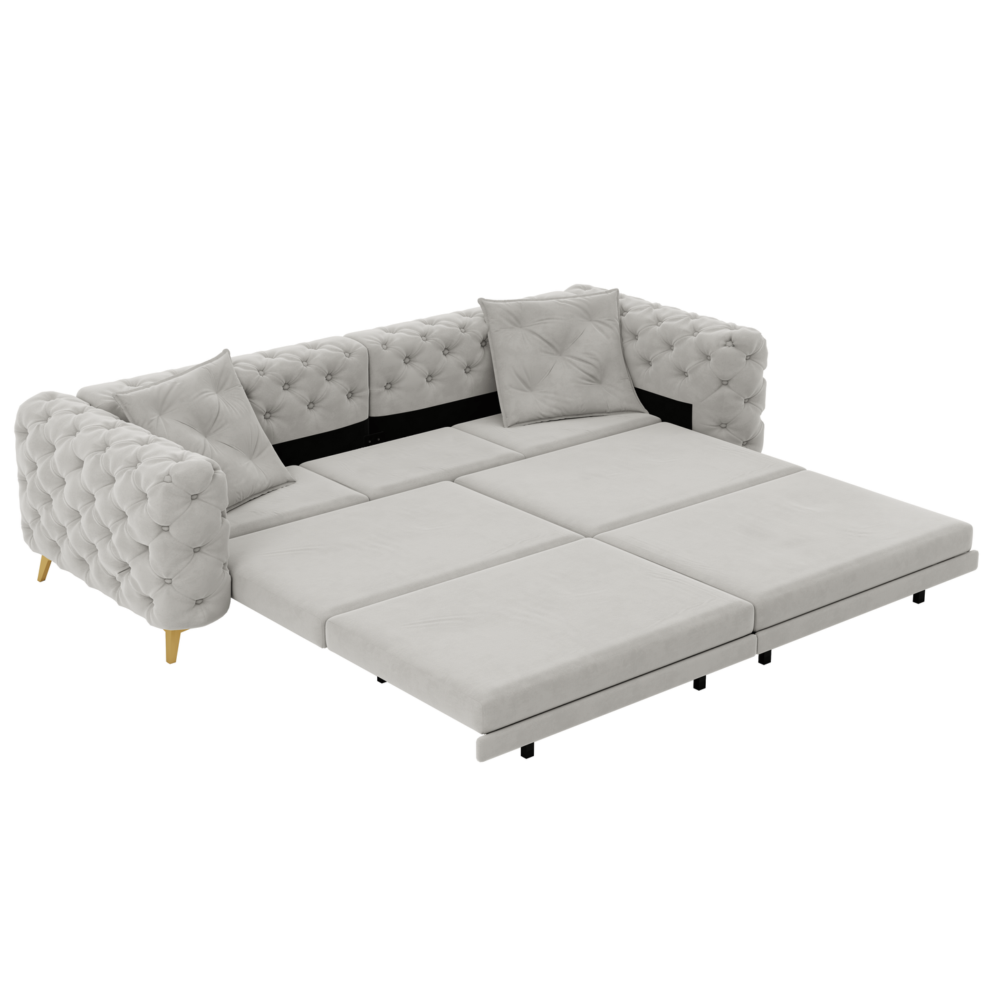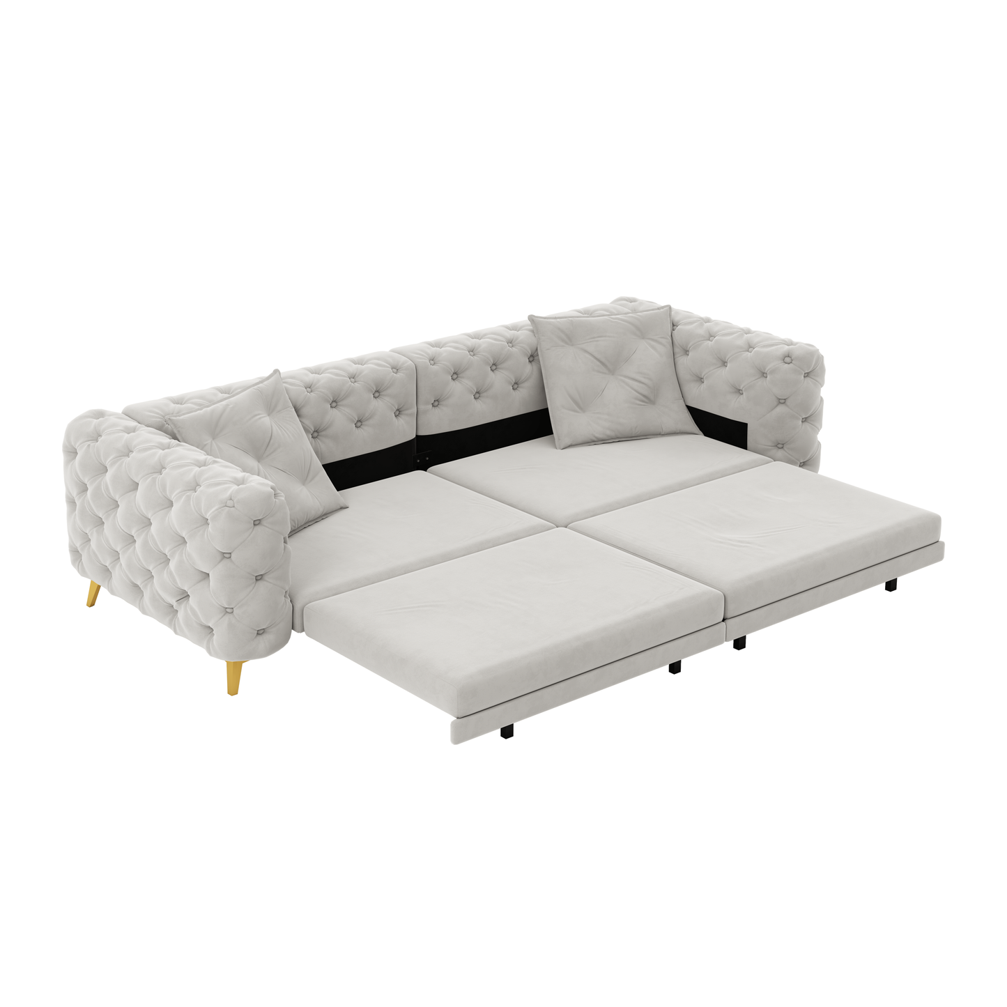 97.7' 3-in-1 Convertible Sleeper Sofa,28.4' Deep Seat Pull Out Sofa Bed,Button Tufted Modern Sofa,4-Seater Couch with Movable Ottoman for Living Room,Small Space,Apartment,Office,Bedroom,Light Grey