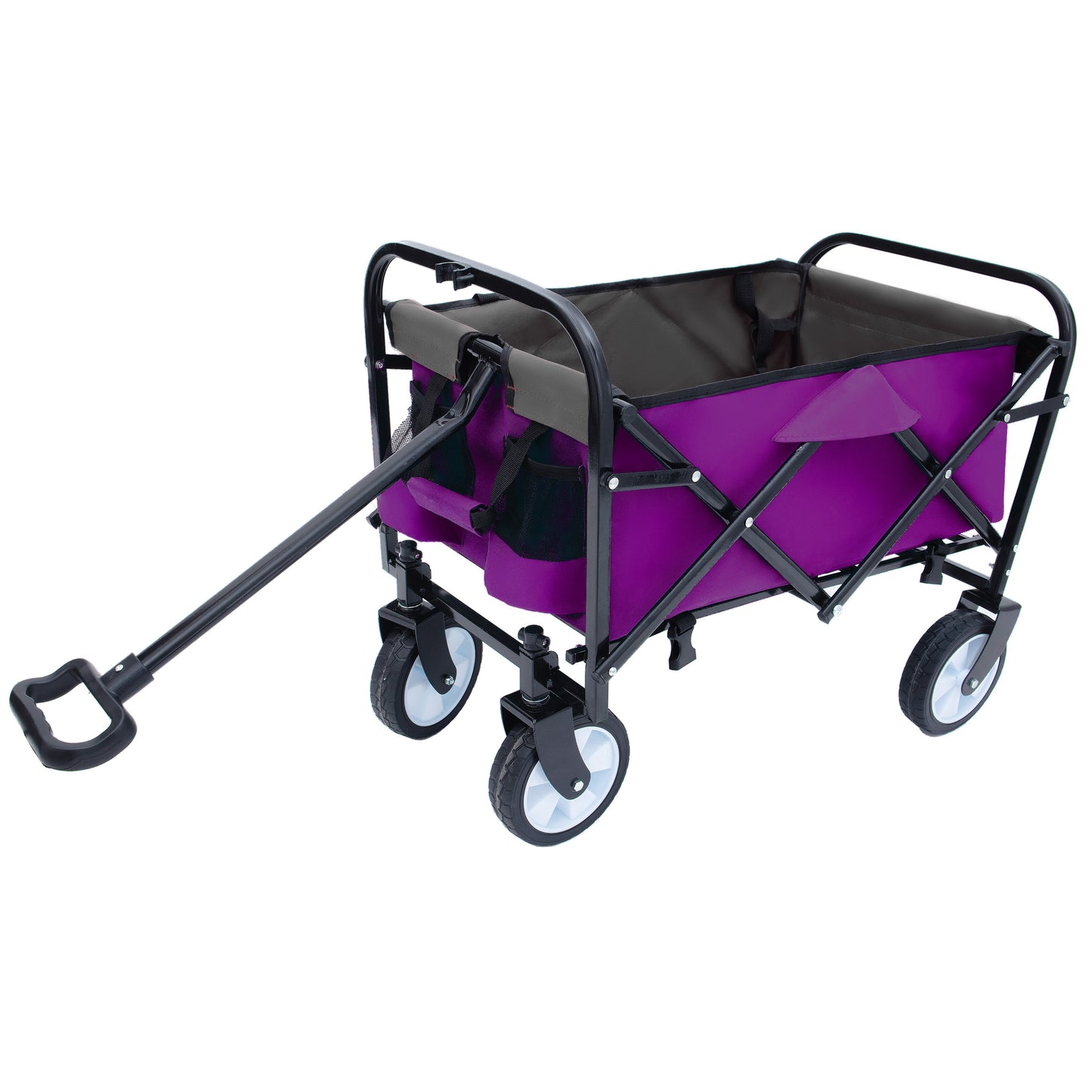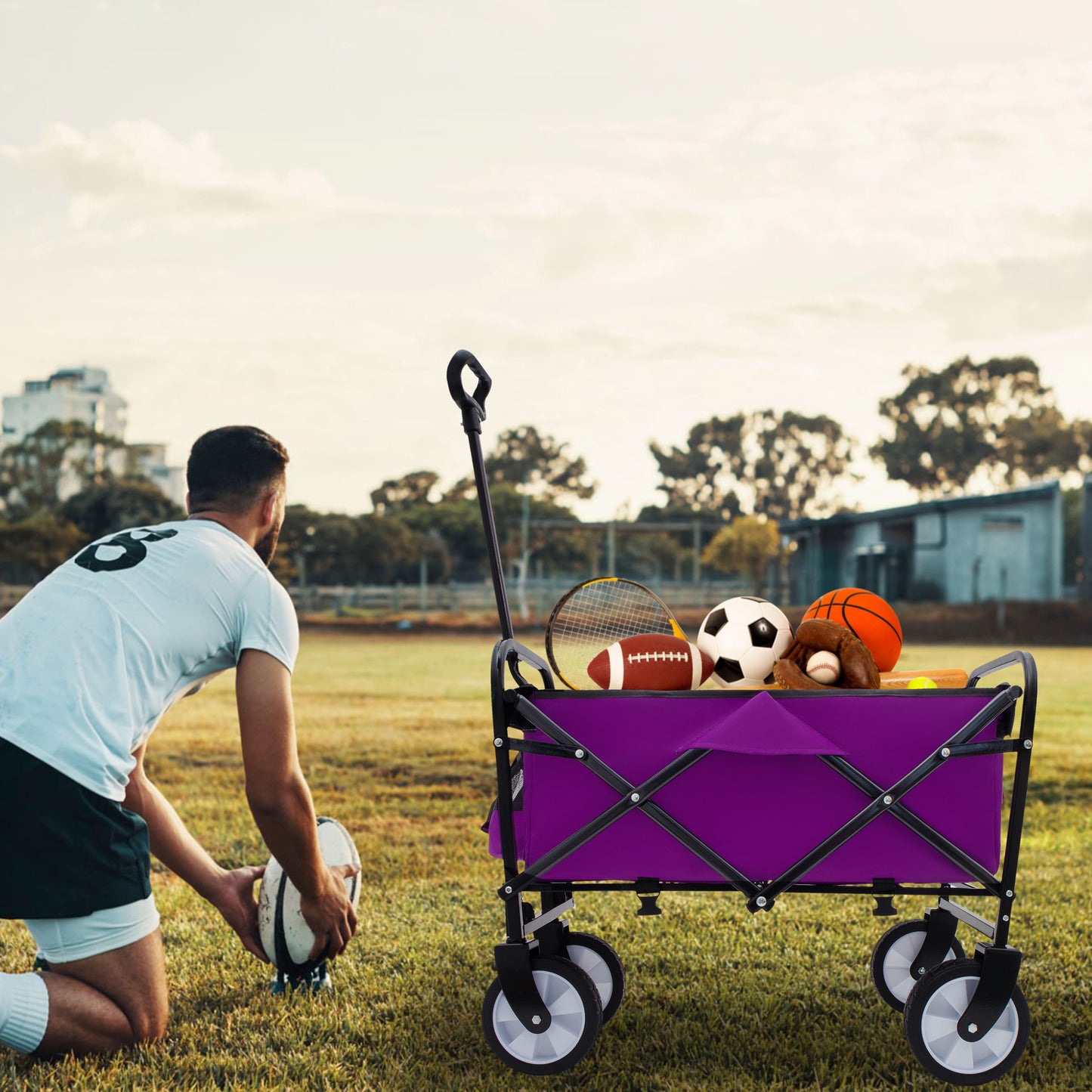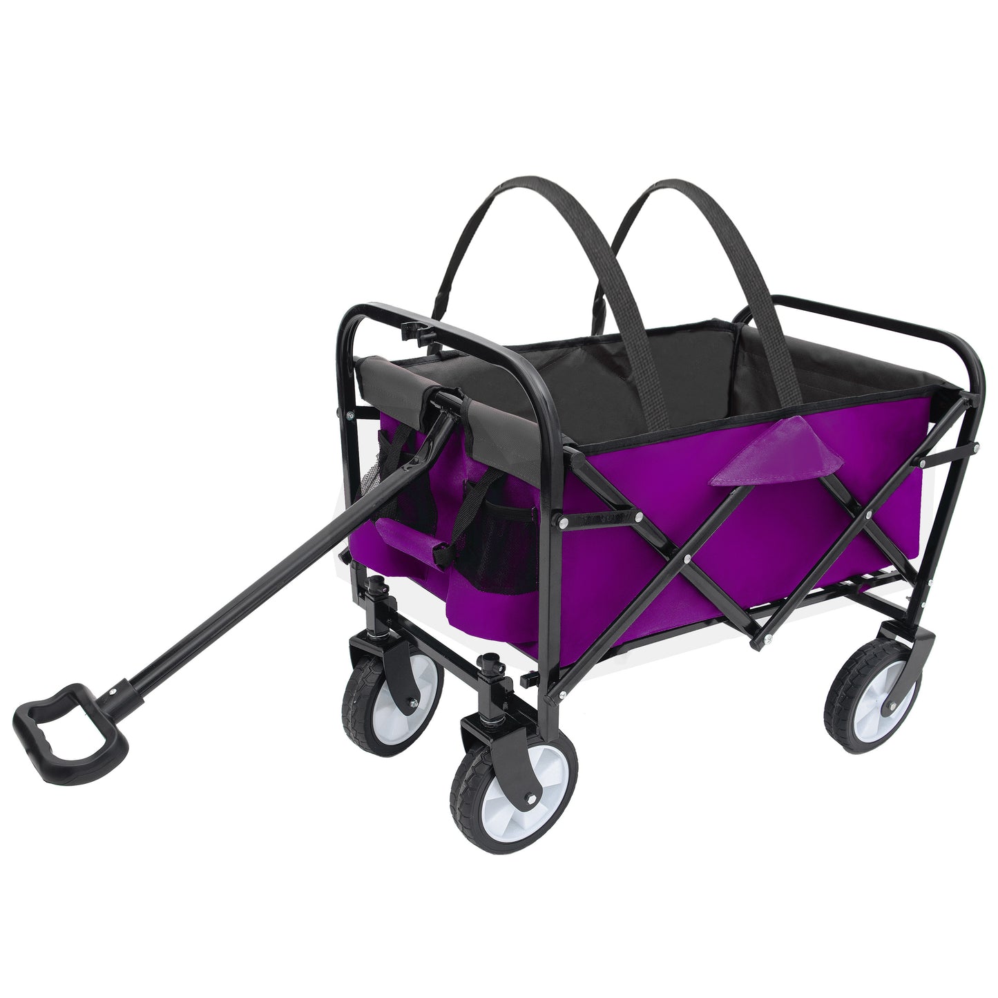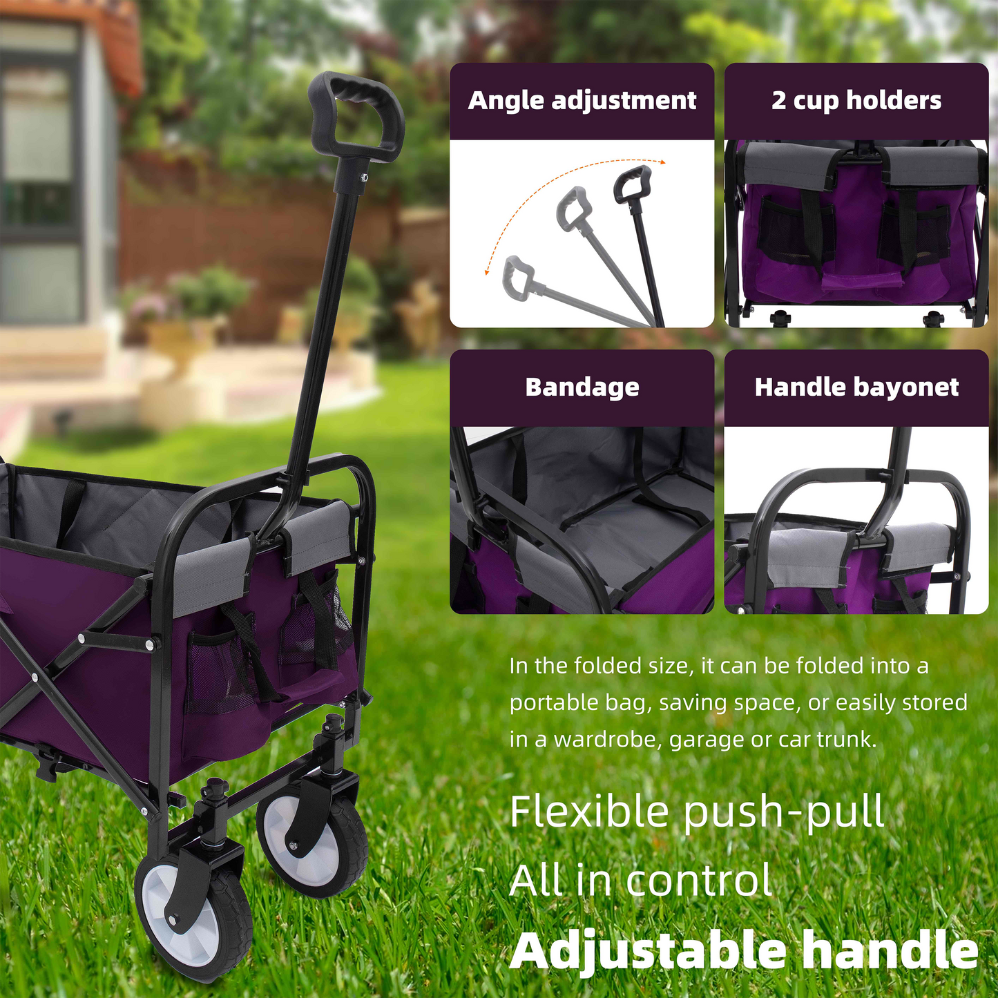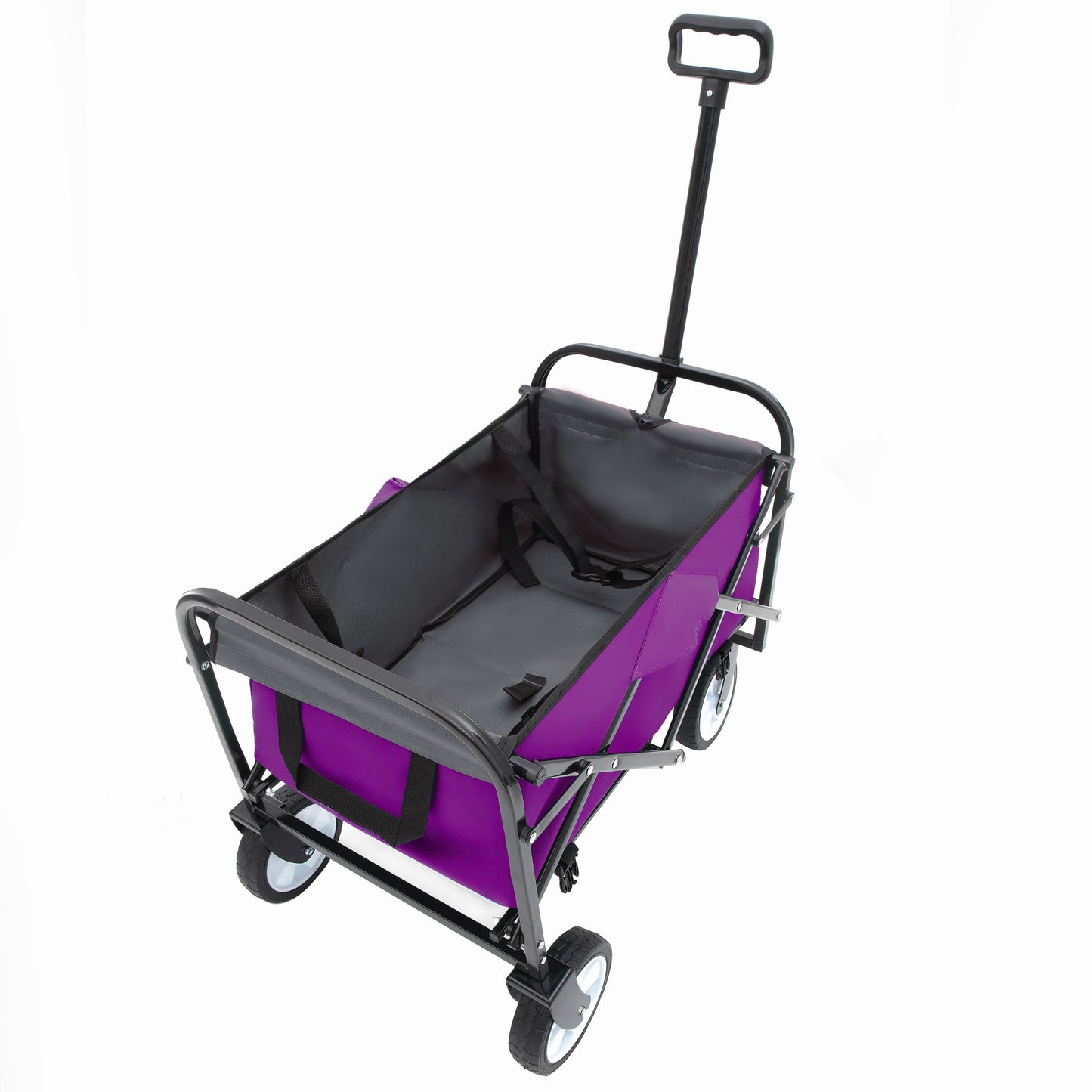 Minimeetall Strap , Collapsible Foldable Wagon Cart with strapping system Beach Wagon , Utility Cart , Utility Wagon Grocery Cart for Camping Shopping Sports Gardeing Fishing Supports 225lbs purple