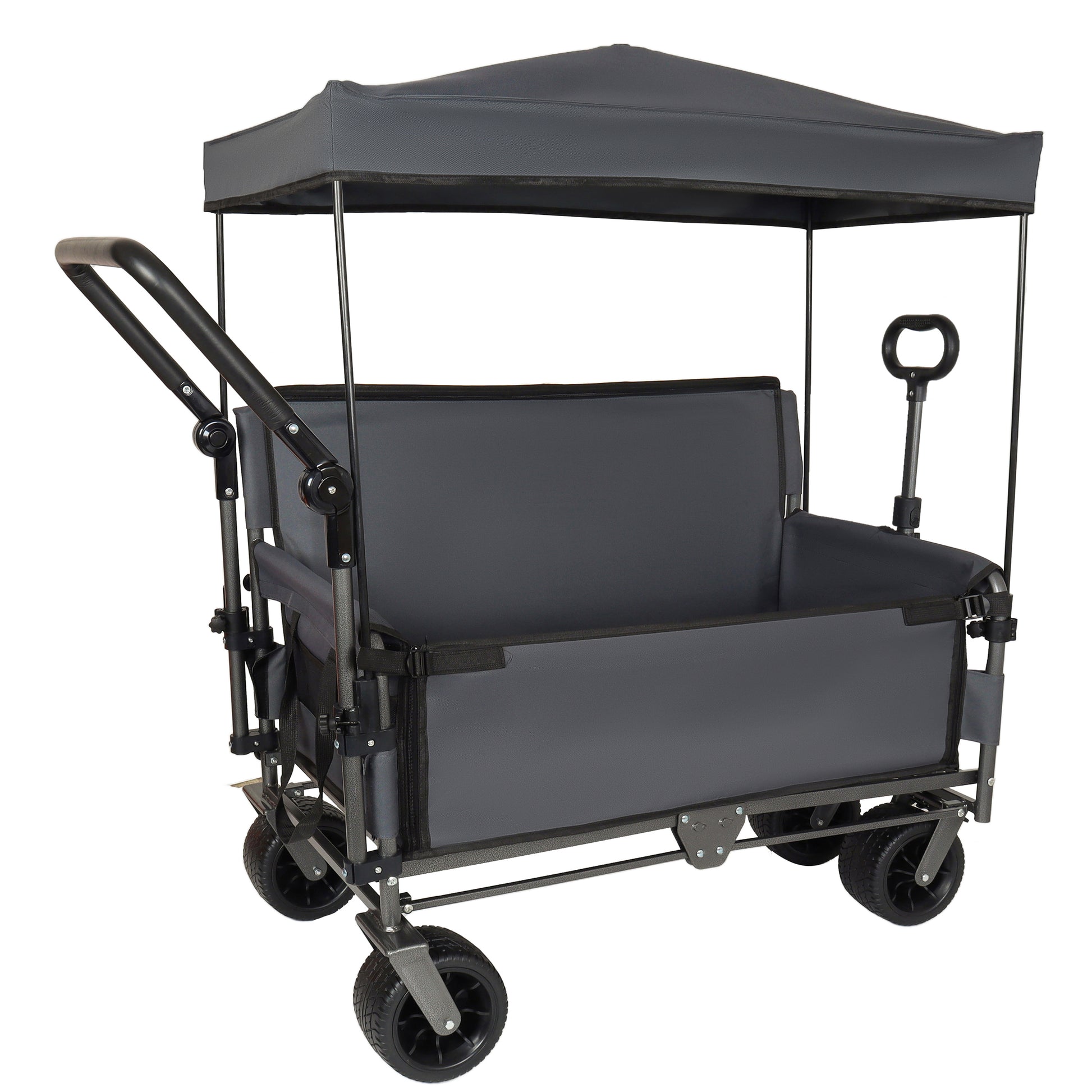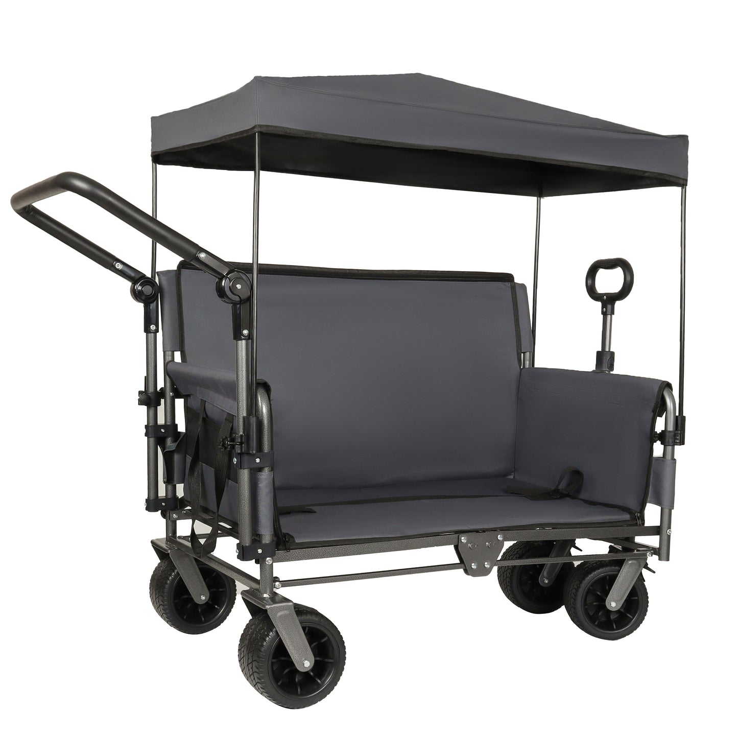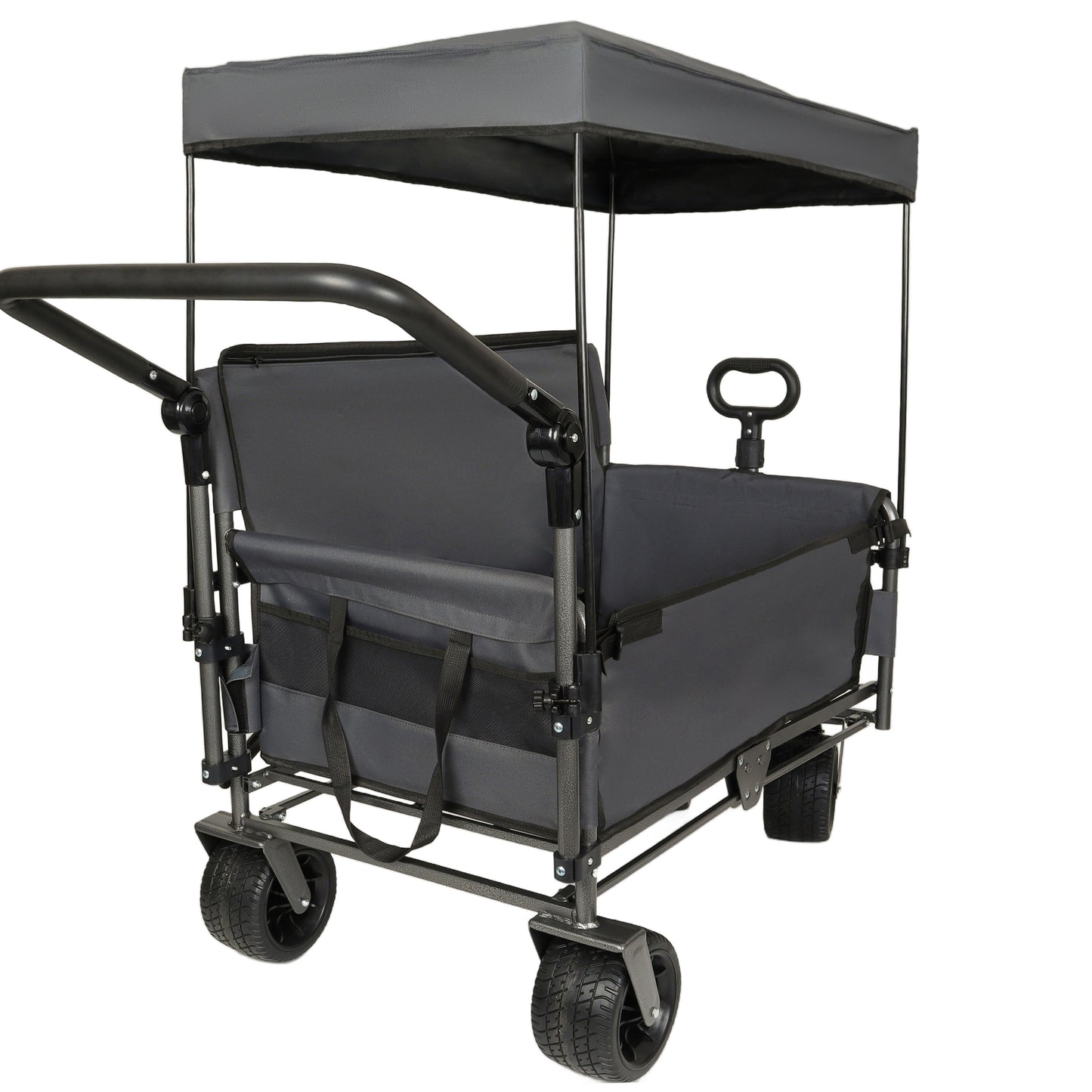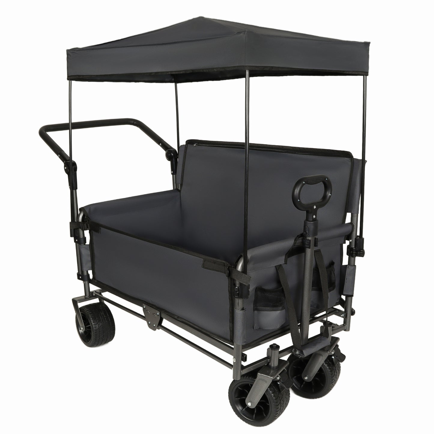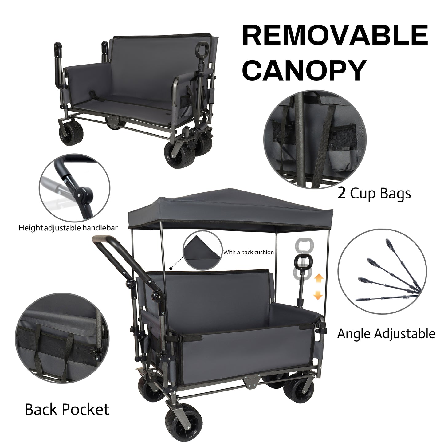 3-in-1 Folding Wagon Cart with Bench Seat & Canopy & Storage, 500lbs Heavy-Duty, 180L Capacity, All-Terrain Wagon for Camping, Beach, Sports, & Garden, Gray