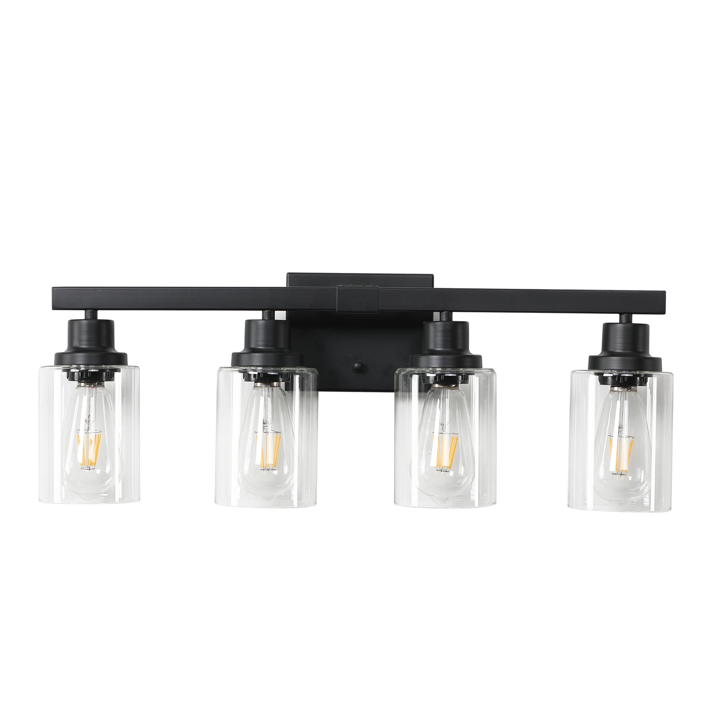 24' Modern Black 4-Light Bathroom Vanity Light Fixture, Industrial Wall Sconce with Clear Glass Shades for Mirror, Bathroom, Bedroom, and Hallway (No Bulbs)