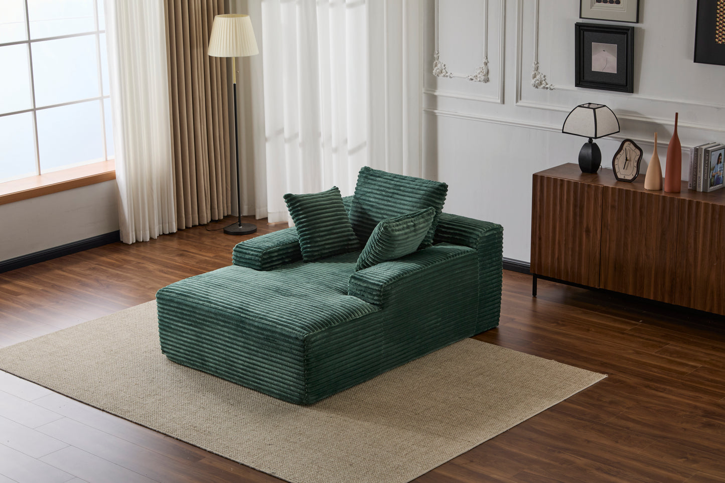 Oversized Chaise Lounge Chair Cozy Cloud Couch, Modern Plush Corduroy Upholstered Sleeper Sofa Daybed with 3 Throw Pillows and Wide Armrest for Living Room, No Assembly Required,Green