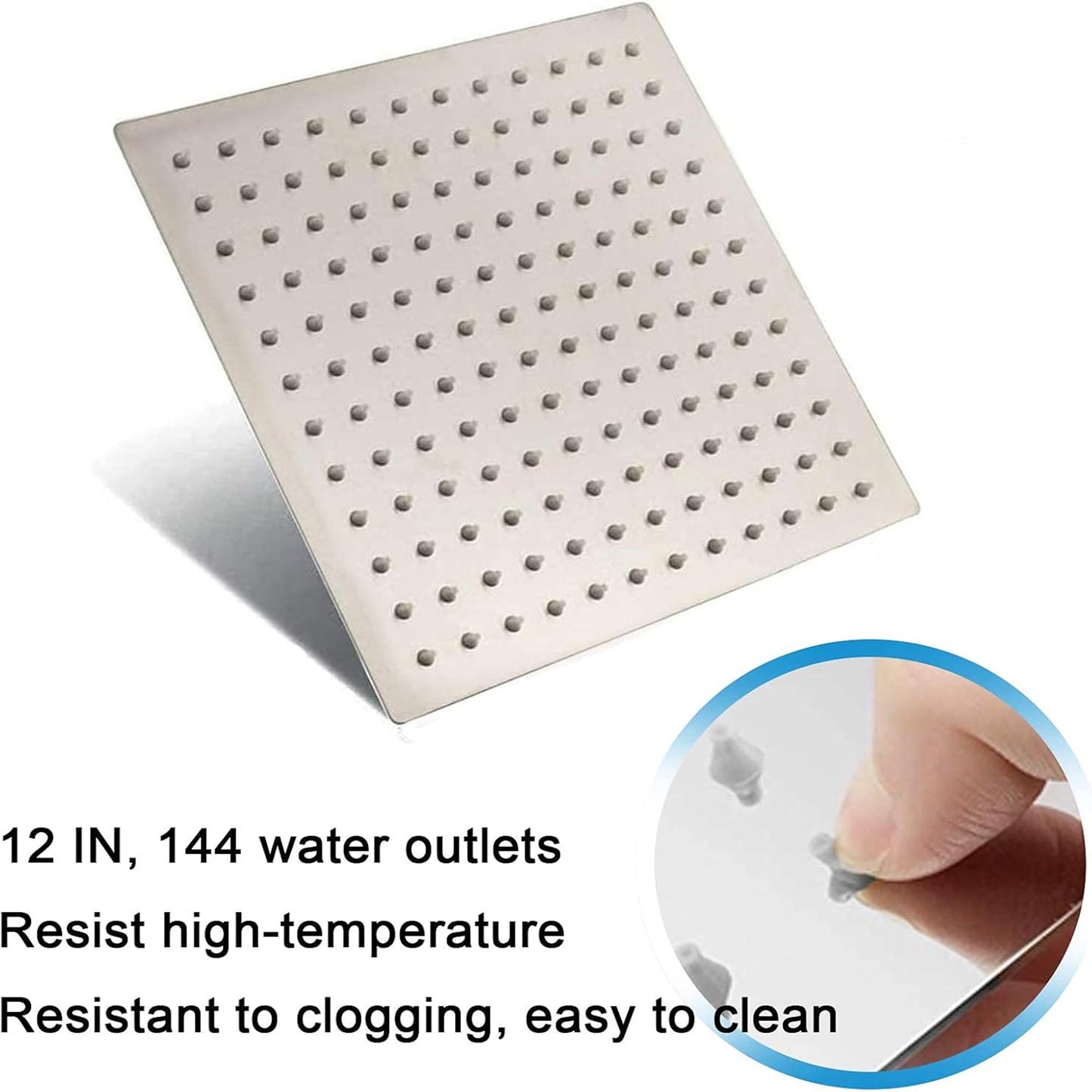 12 Inch Brushed Nickel Rain Shower Head, Square Ultra Thin 304 Stainless Steel High Pressure Shower Head Waterfall Full Body Coverage Waterfall Shower Head