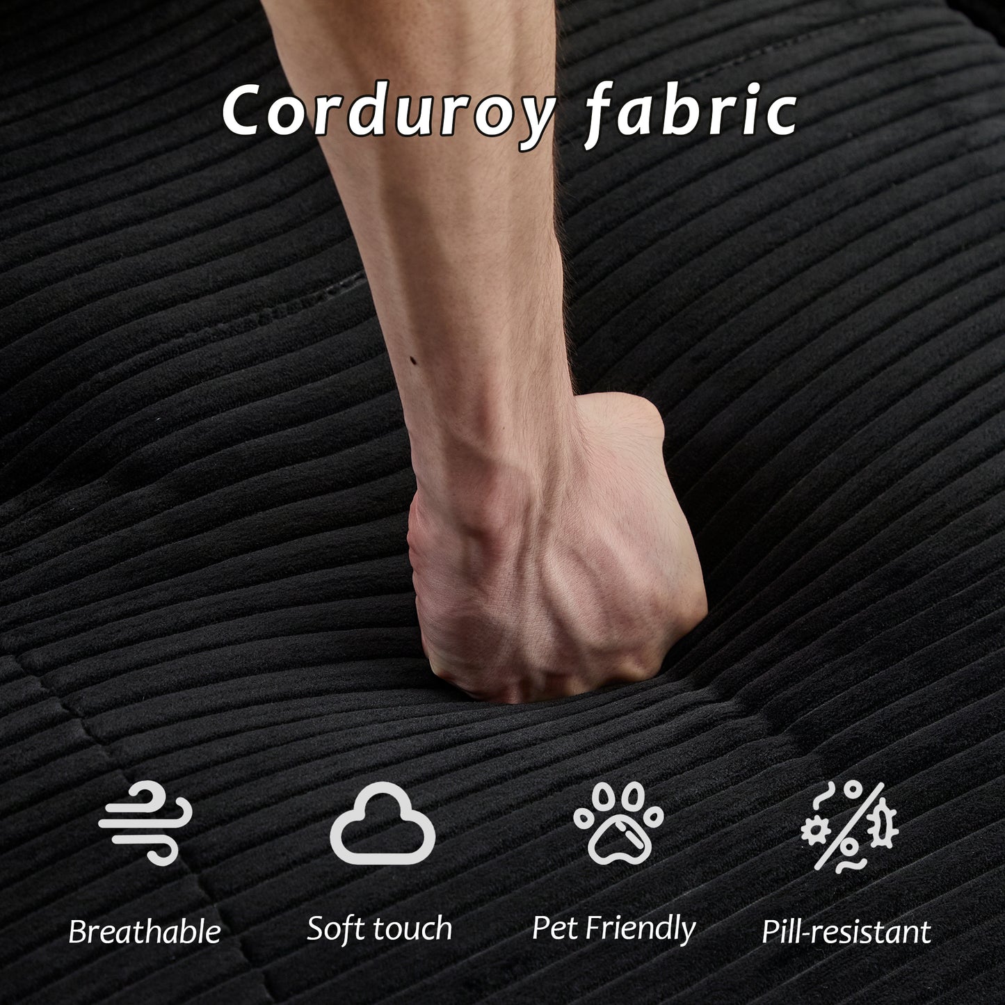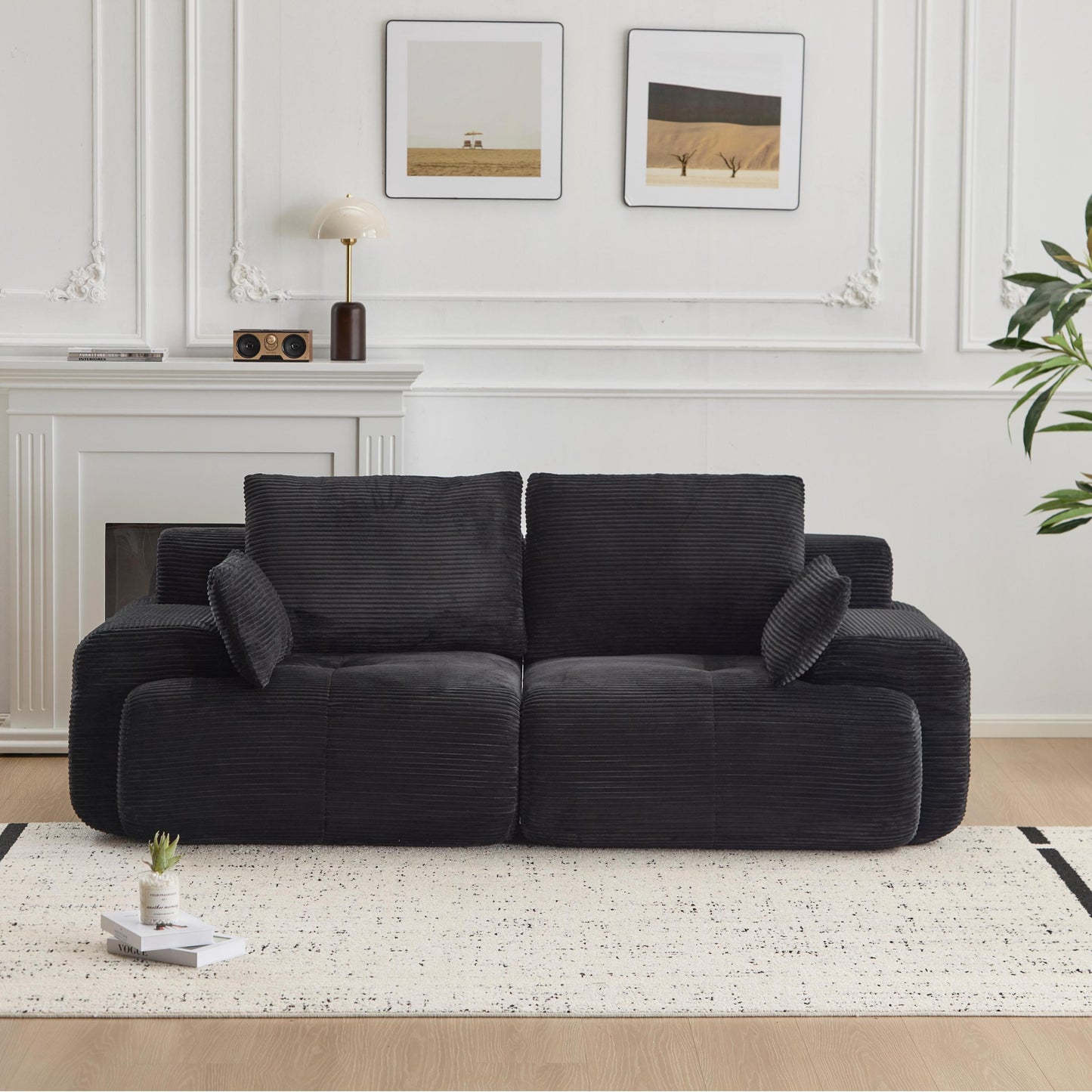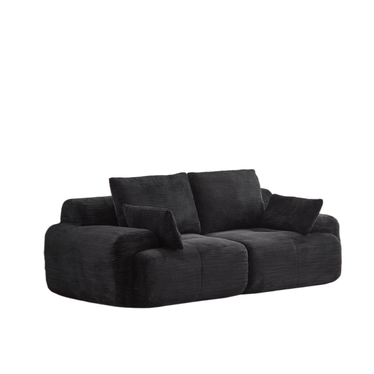 Modern Memory Foam Compressed Sofa,2 Seater Large Sectional Couches for Living Room,Pet-Friendly Cloud Modular Sectional Sofa,Corduroy Fabric,Extra Deep Loveseat,No Assembly required, Black