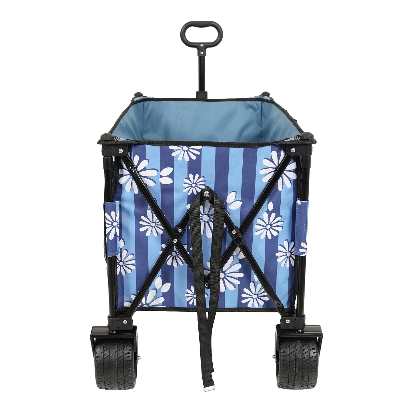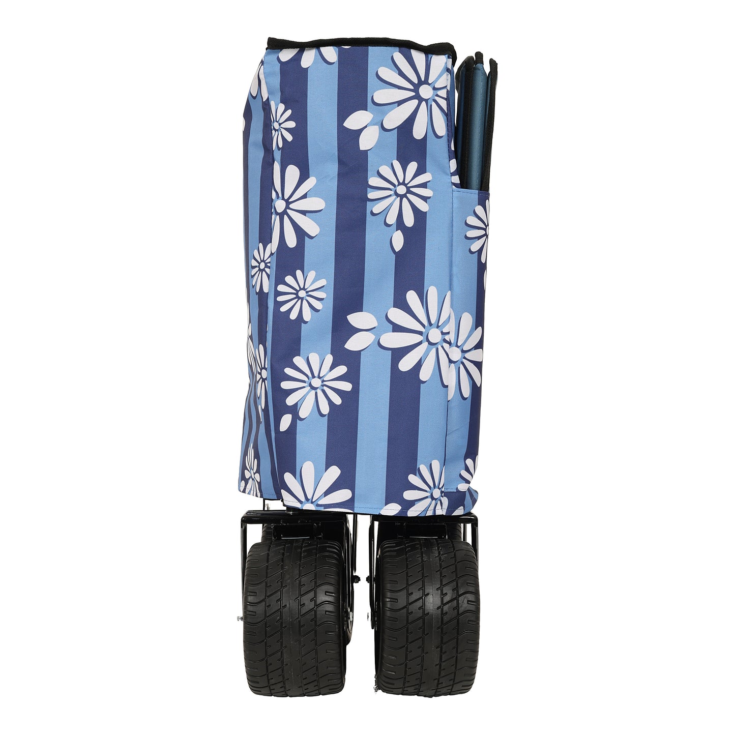 Heavy-Duty 480lbs Folding Wagon Cart with Bonus Picnic Mat - All-Terrain Beach Wheels, Drink Holders, Brakes & Side Pocket for Camping, Garden, Sports, blue vertical print
