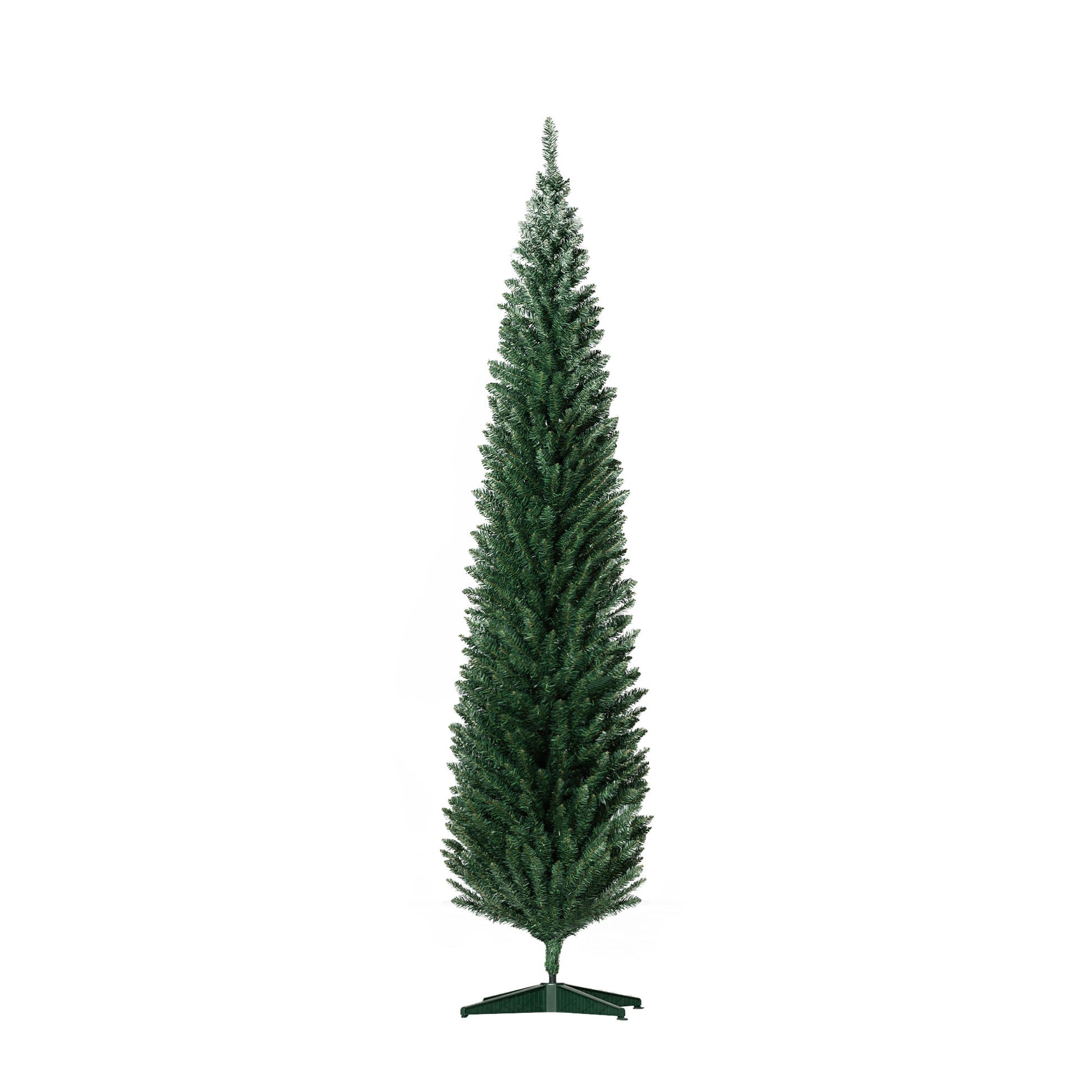 HOMCOM 8' Artificial Pencil Christmas Tree, Slim Xmas Tree with 618 Realistic Branch Tips and Plastic Stand, Green