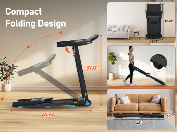 Treadmill with Incline, 3.0HP Quiet Foldable Treadmills for Home, 10.0MPH 300 LBS Weight Capacity Home Exercise Equipment Treadmills with Heart Rate Sensors,Type C & USB Charge Station ,Bluetooth