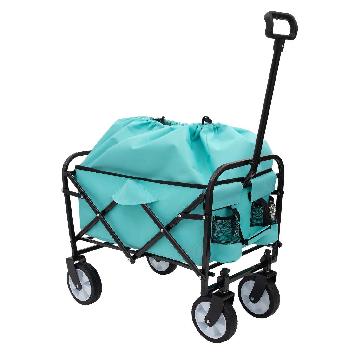 Minimeetall Multi-use Bag,Collapsible Foldable Wagon Cart Beach Wagon Heavy Duty Utility Cart Utility Wagon Grocery Cart for for Camping 3pcs plastic Liner bag /Cover , blue