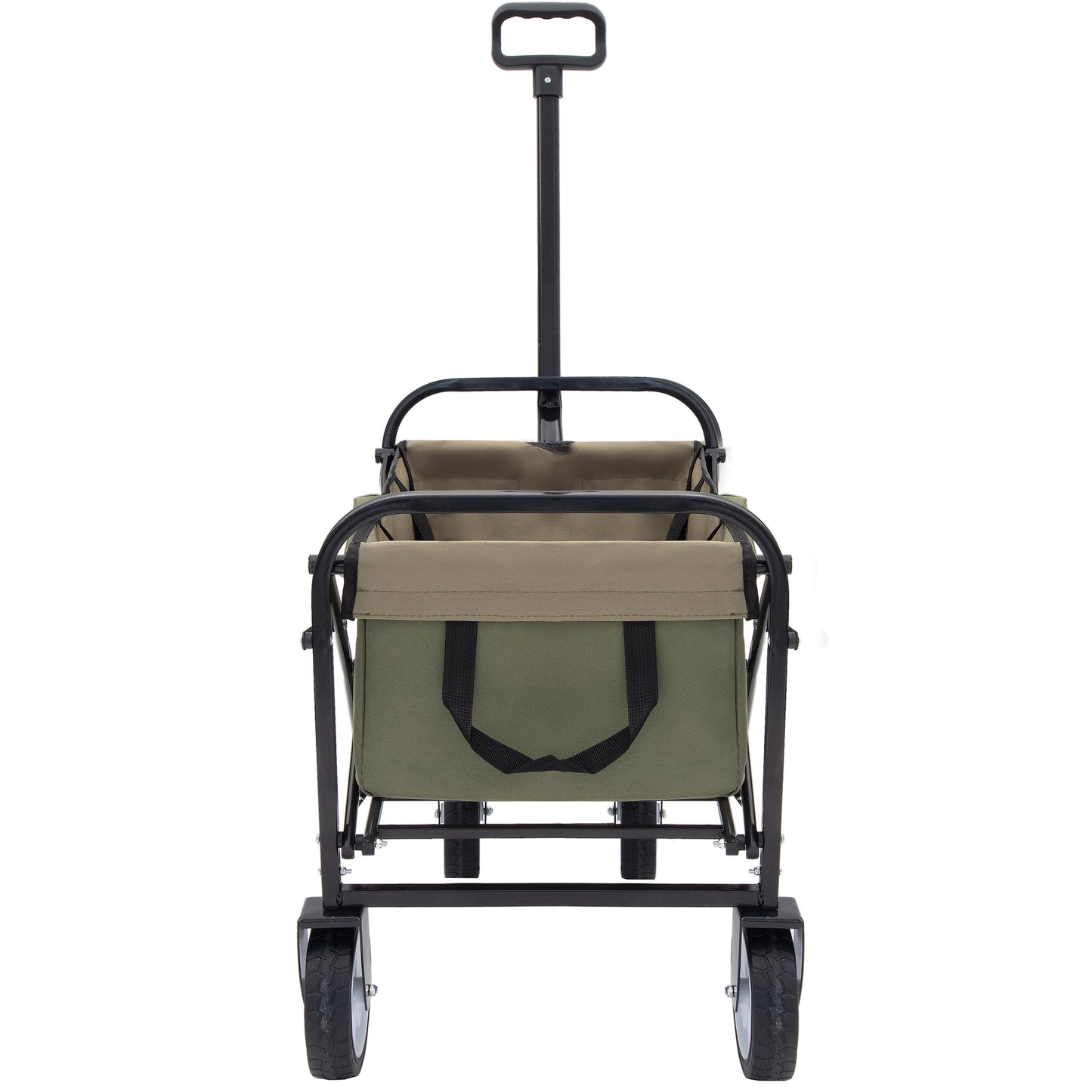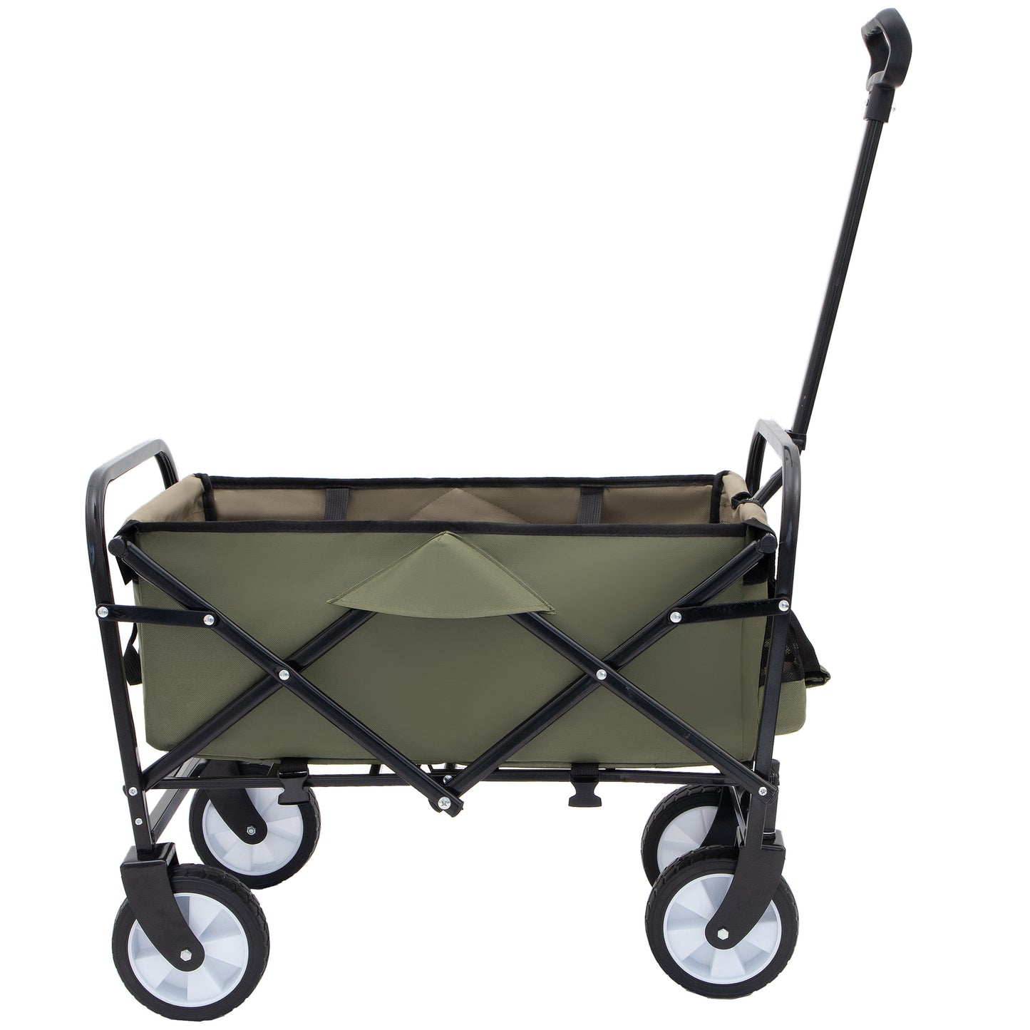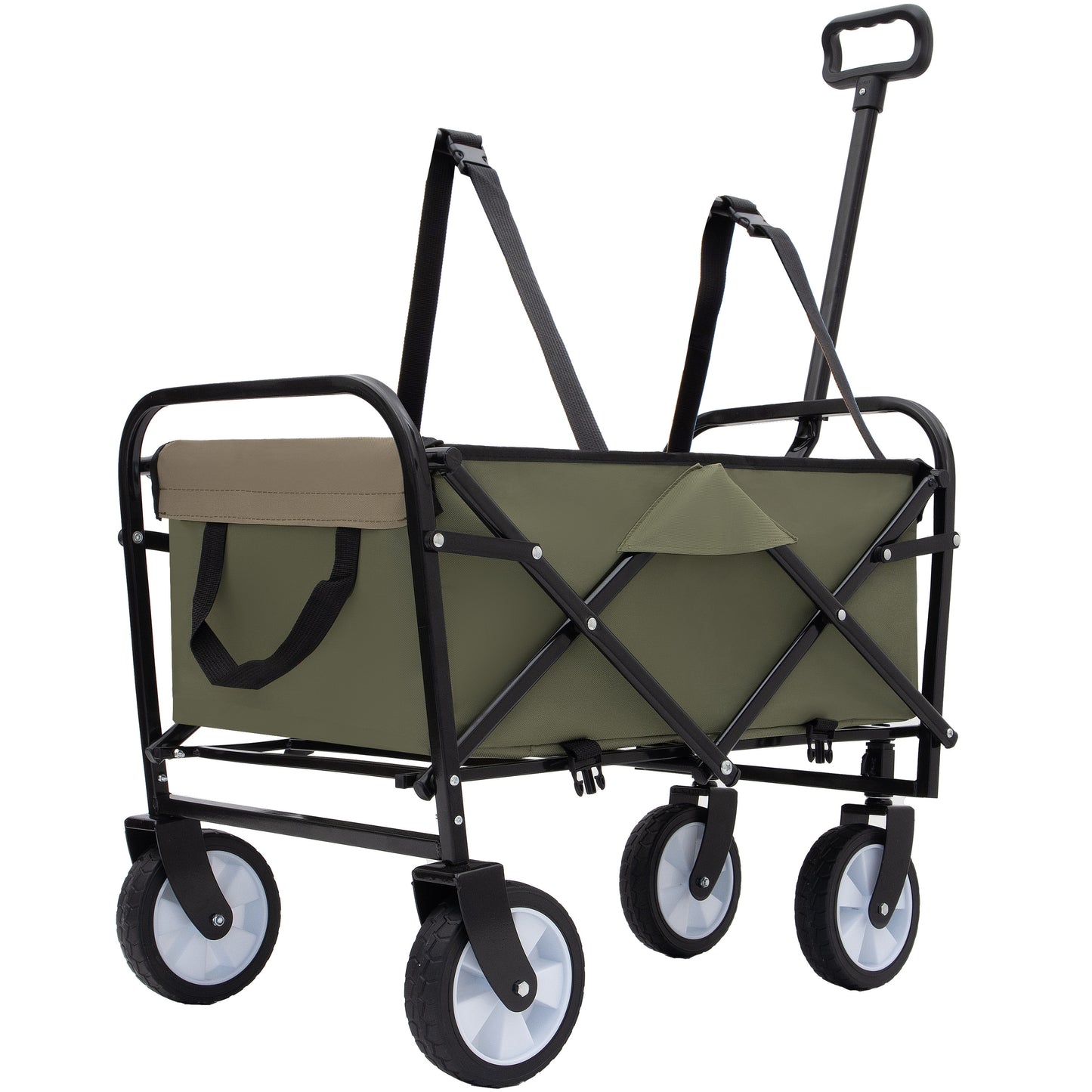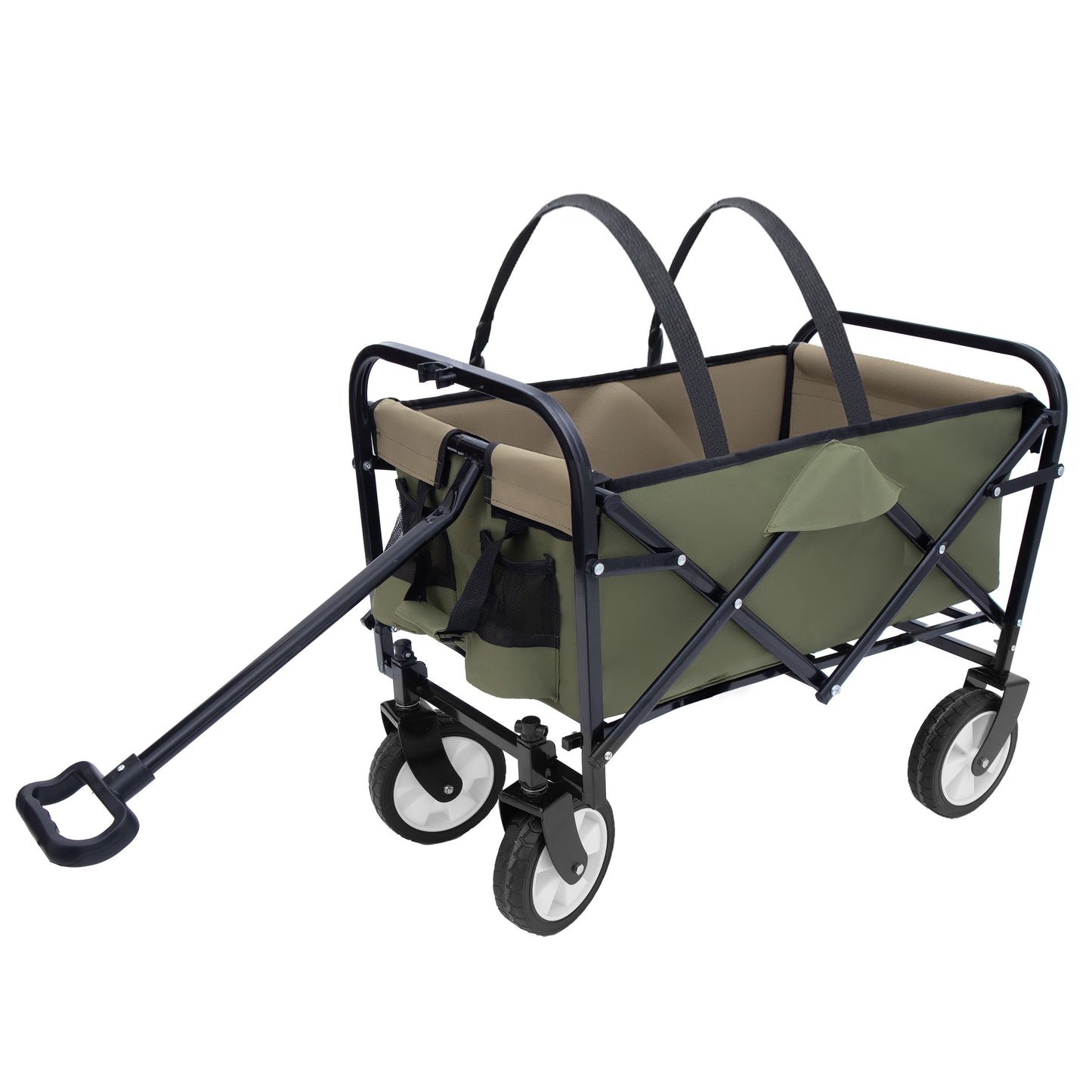 Minimeetall Strap Collapsible Foldable Wagon Cart with strapping system, Beach Wagon, Utility Cart, Utility Wagon Grocery Cart for Camping Shopping Sports Gardeing Fishing Supports 225lbs, army green