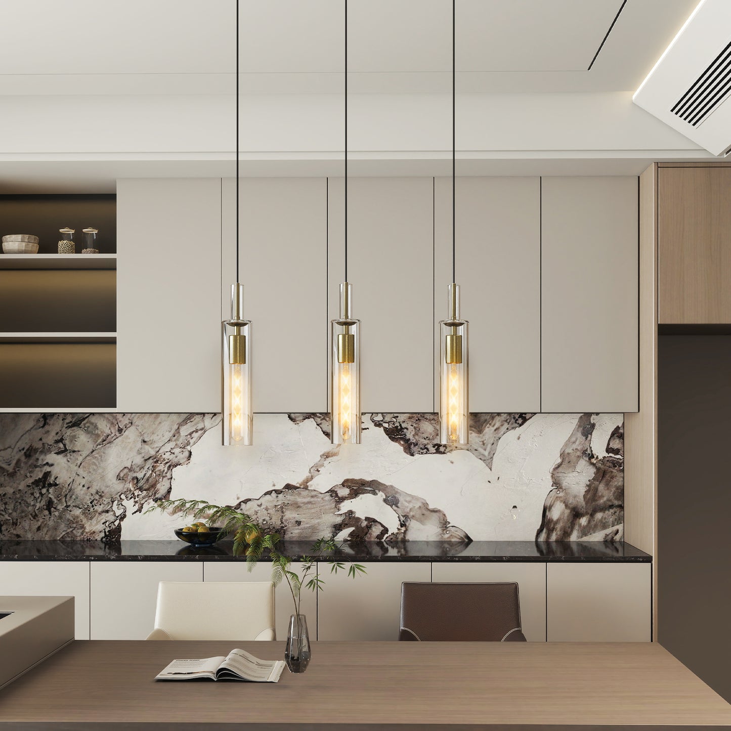 - 【High Quality】Brushed brass gold finish kitchen pendant lights are equipped with sturdy die-cast metal, so do not worry about aging, bent, or color fading problems. The light fixture with hand-blown clear striped glass shade is perfect for modern and traditional designs, ideal for kitchen island, dining room, and dining room fixtures.