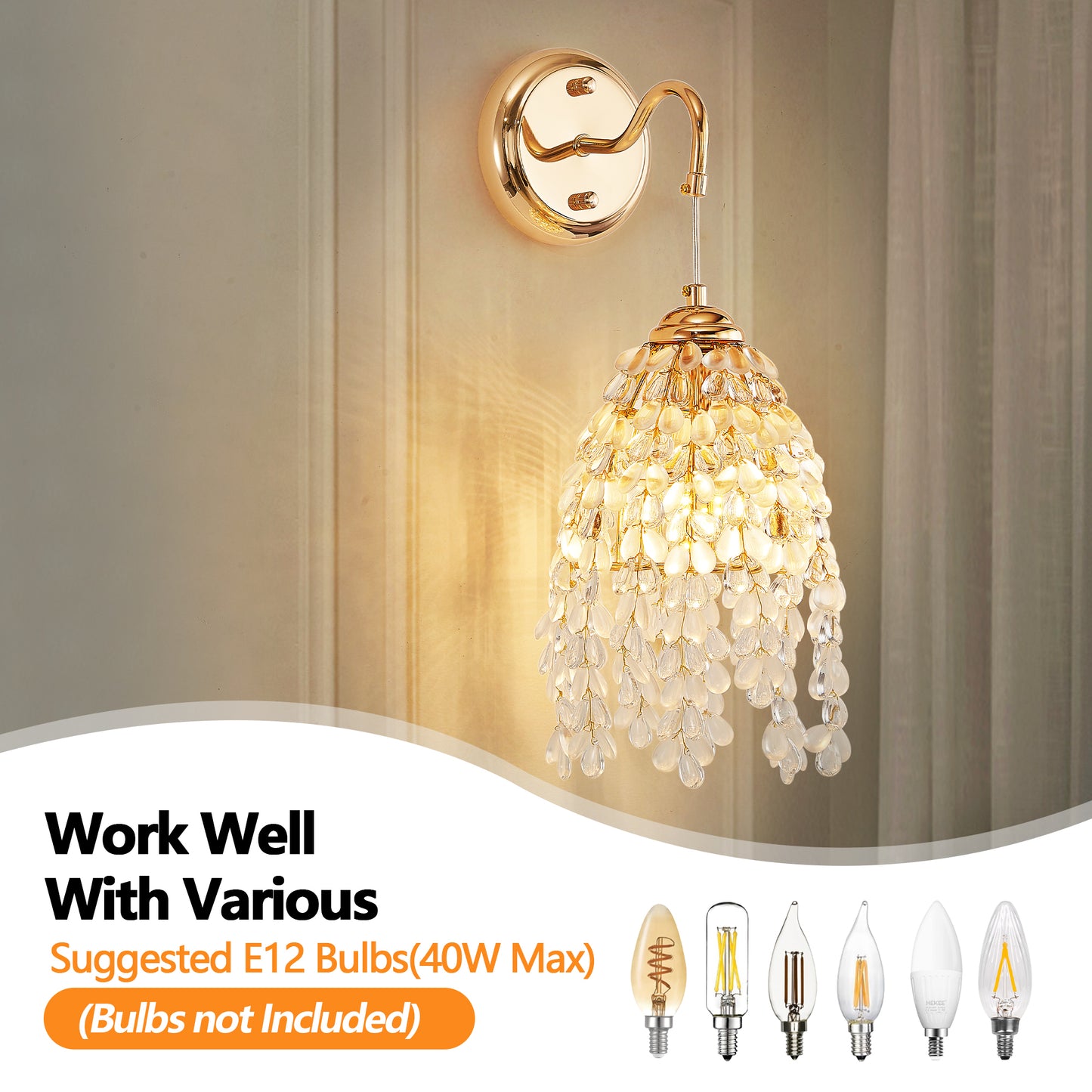 - High quality gold frame: Adopting high-end gold metal frame, exquisite and durable, presenting a simple yet noble modern sense, elegantly complementing the crystal lampshade, suitable for various home styles.