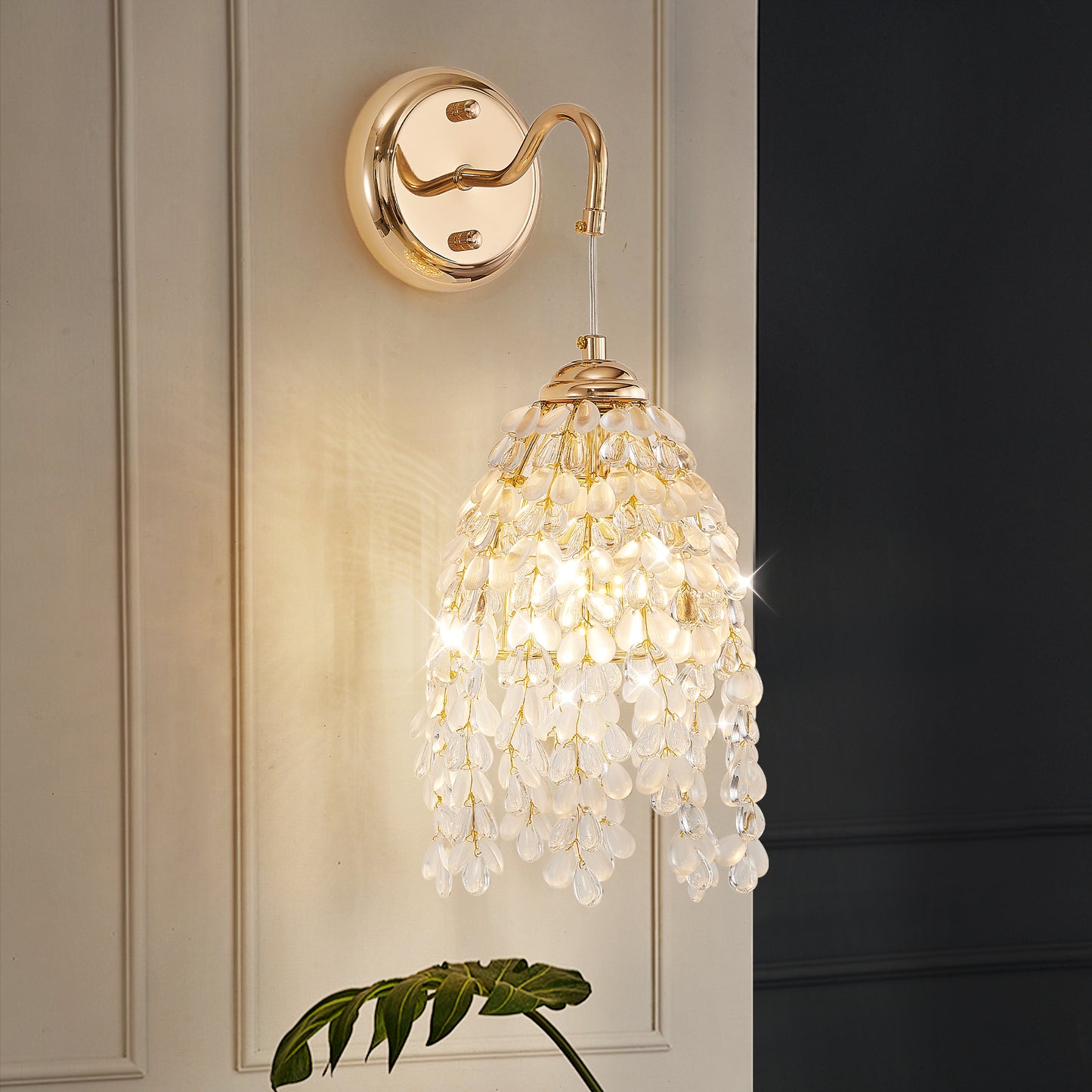 Set of 2 Gold Frame and Crystal Grape-Shaped Bead String Wall Sconces , E12 Bulb Socket, Elegant Hanging Light Fixture for Living Room, Bedroom, Hallway (Bulb Not Included)