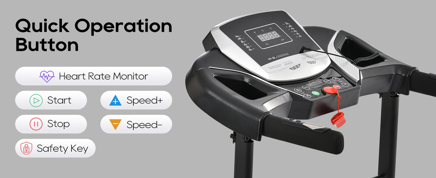 MULTI-FUNCTION HANDRAIL: The multi-functional handlebar effectively assists the user during exercise, supporting quick speed adjustments and one-touch start and stop. Monitor your target heart rate in real time with the built-in handrail heart sensor, tracking your pulse rate during exercise ensures that you are exercising correctly and efficiently.
