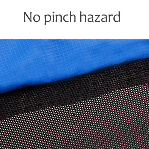- SAFE & DURABLE - Large-sized galvanized steel structure, foam-padded poles and safety net ensure safety while jumping in the trampoline. Reinforced T-sockets stabilize the upper enclosure frame, high-quality pad protector is sewn to the mat and covers the safety springs, no need to worry your kids feet get stuck while playing.