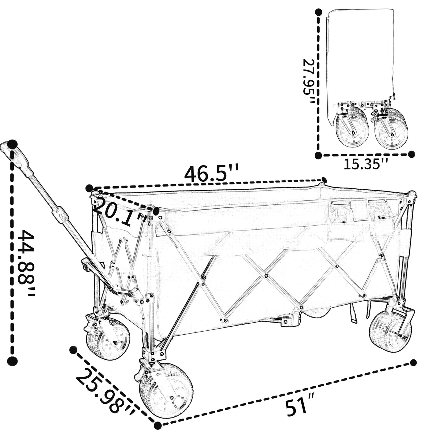 - 【Upgraded 3X Mega Capacity】44.3”L x 20”W x 17”H deep storage holds 3X MORE than standard wagons. Dual mesh cup holders secure drinks while hauling camping gear, tools, or bulk groceries.