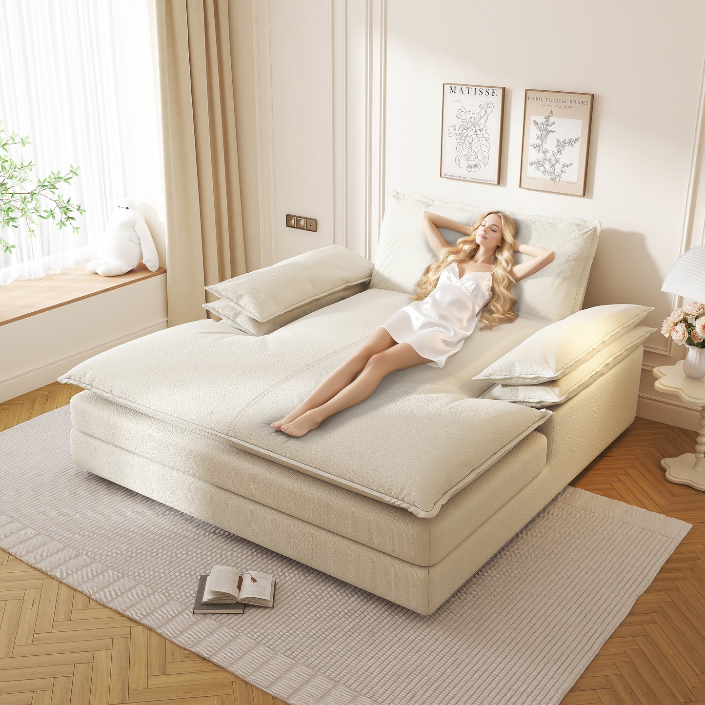 Modern Oversized Double Chaise Lounge Chair,Deep Seat Upholstered Reading Chair with Detachable Design,Chenille Lazy Sofa w/ Large Pillows & Wide Armrests,Suitable for Living Rooms, Apartments,Beige