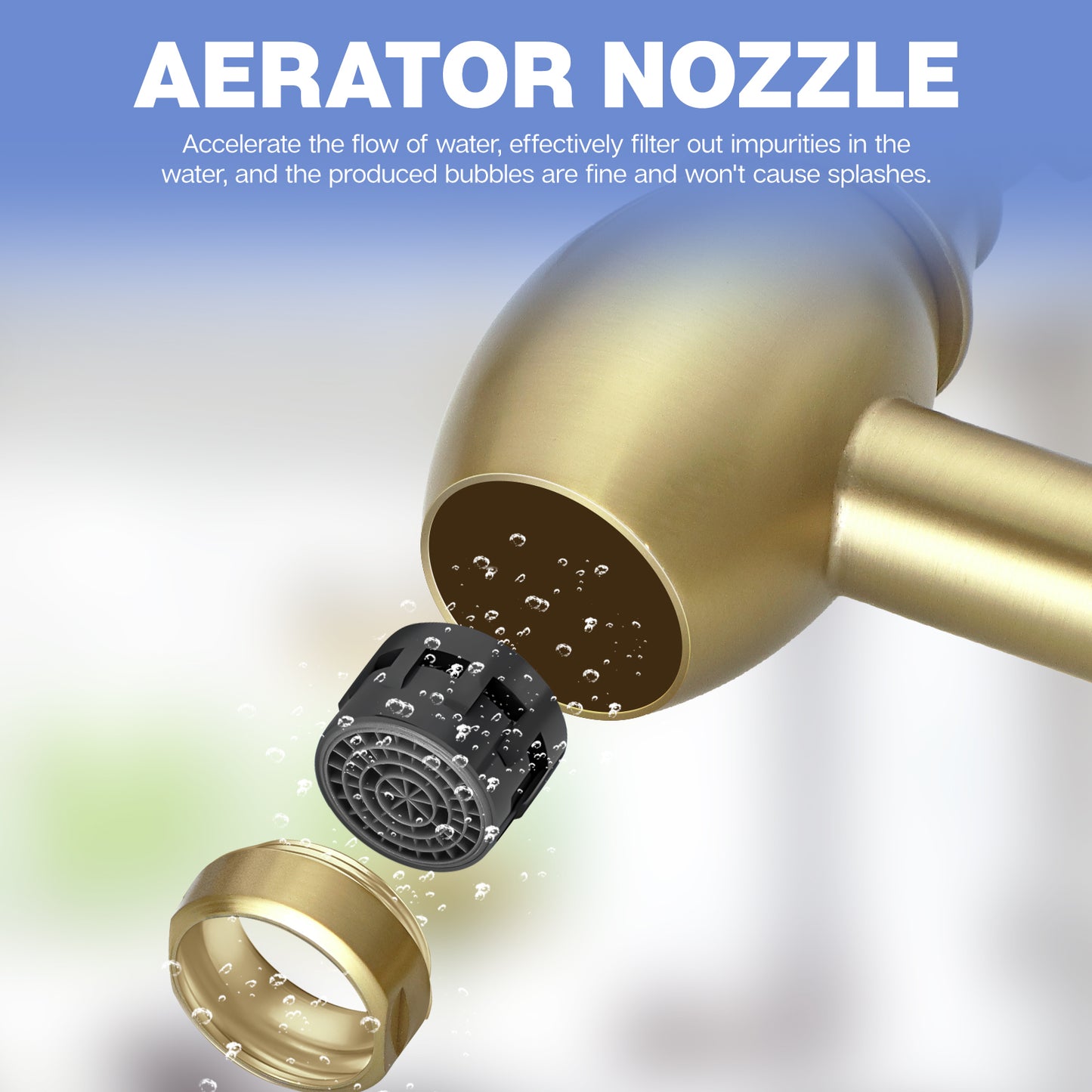 - Brushed Gold Kitchen Pot Faucet with Double Joint Swing Arms