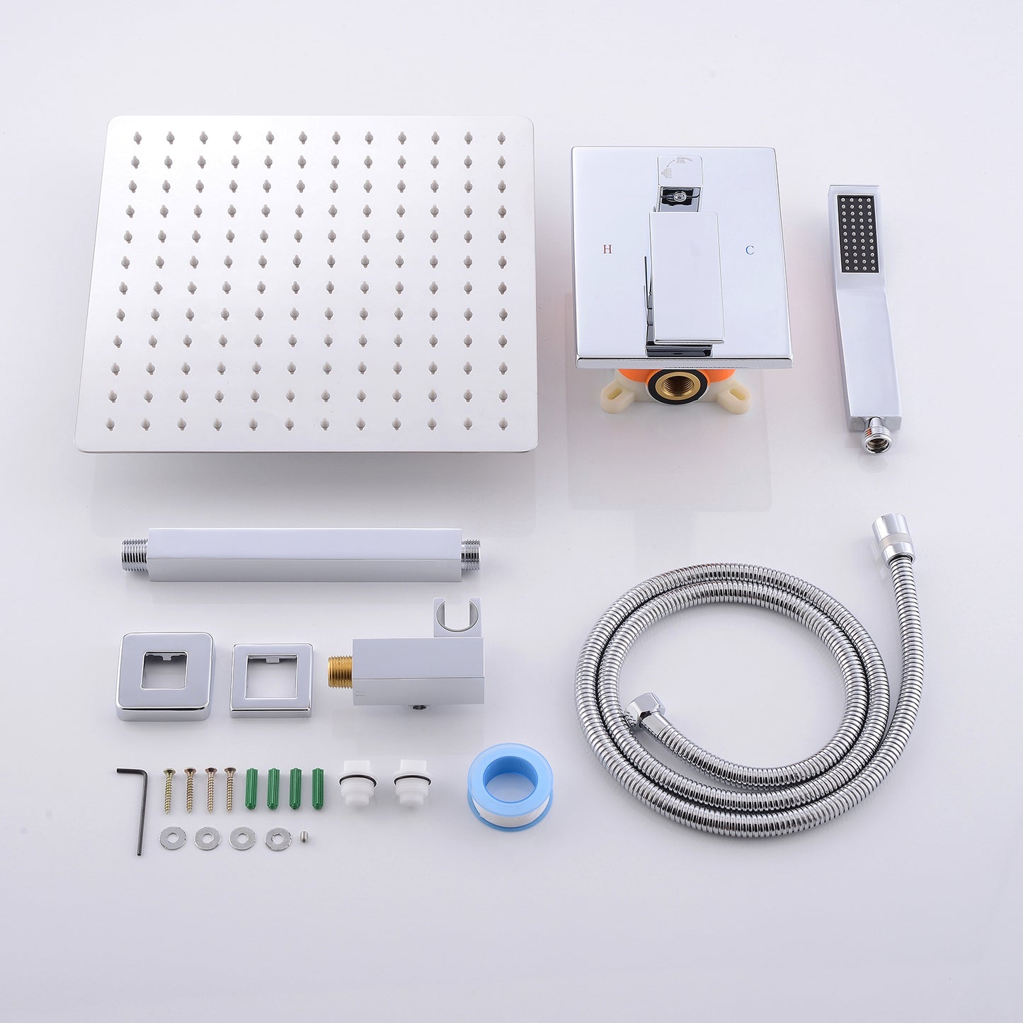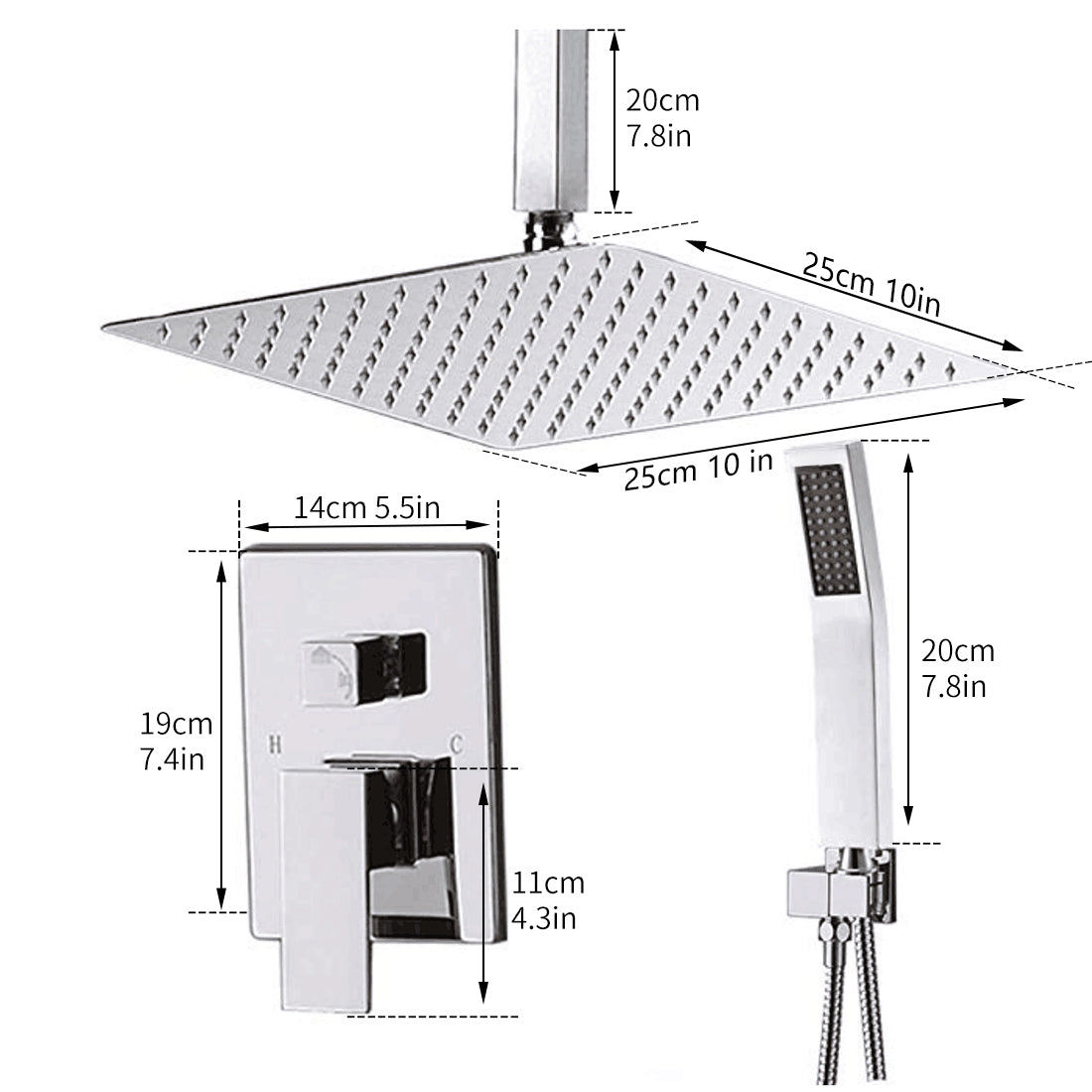 Quality Promise: This shower system features all-metal sturdy construction. The mixing valve is made of solid brass with rust-free, long-life characteristics, while the 304 Stainless Steel Rain Shower Head with silicone nozzles allows you to wipe away mineral deposits with the swipe of a finger. Shining Chrome Finish: The mirror-like polished chrome offers a sleek and modern look for your bathroom and walk-in shower while ensuring corrosion resistance and durability. It can match most bathroom decors, and you can easily remove residual limescale on the finish with just a light rub after your shower.