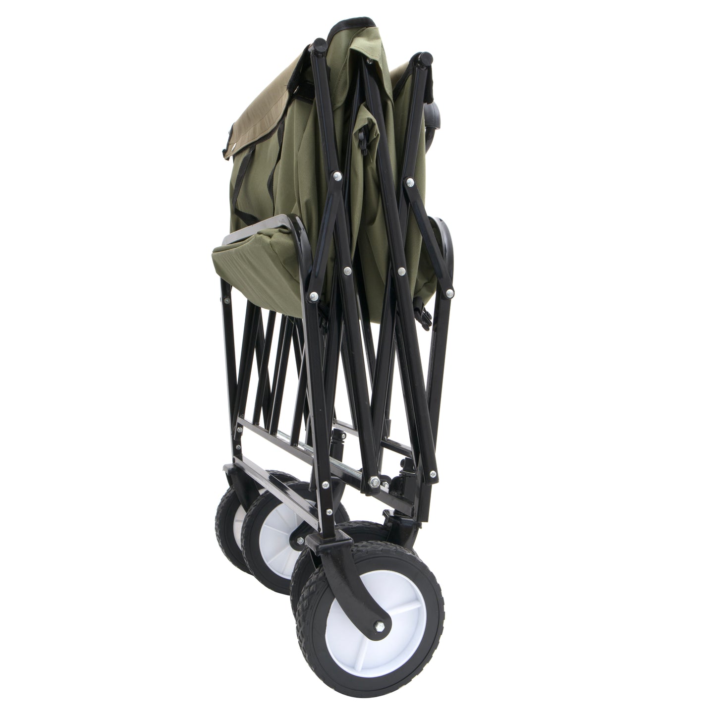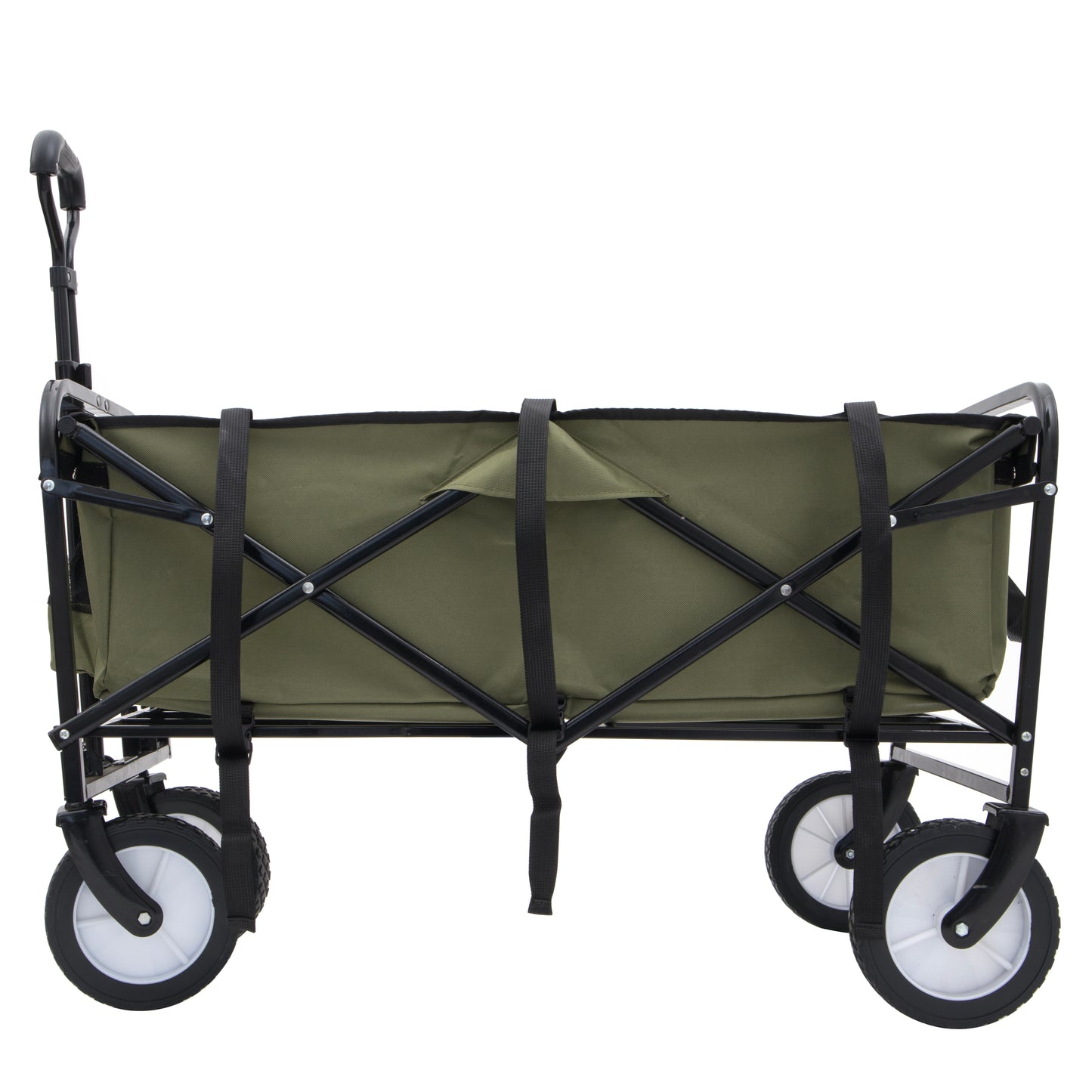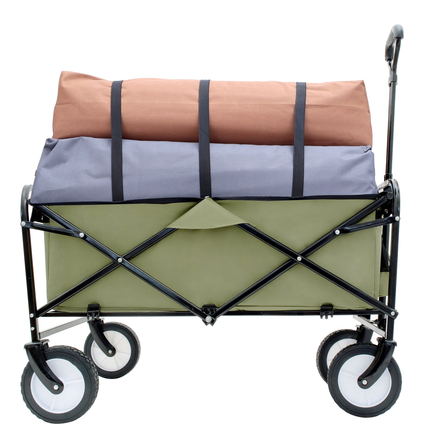 360lbs Collapsible Foldable Wagon Cart with strapping system ,Beach Wagon Utility Cart Utility Wagon Grocery Cart for Camping Shopping Sports Gardening Fishing Supports 3pcs plastic Liner bag Green