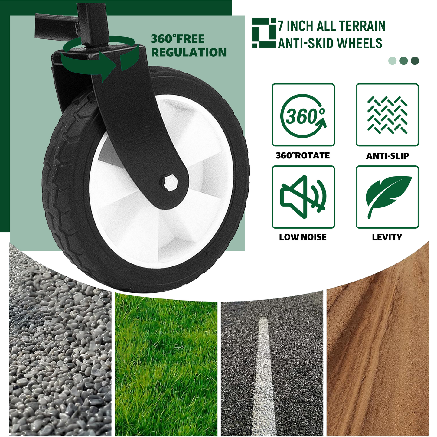 - All-Terrain 360-Degree Swivel Wheels: Equipped with 7-inch wheels that can rotate 360 degrees, this cart is perfect for navigating various terrains, making it easy to maneuver on any surface.