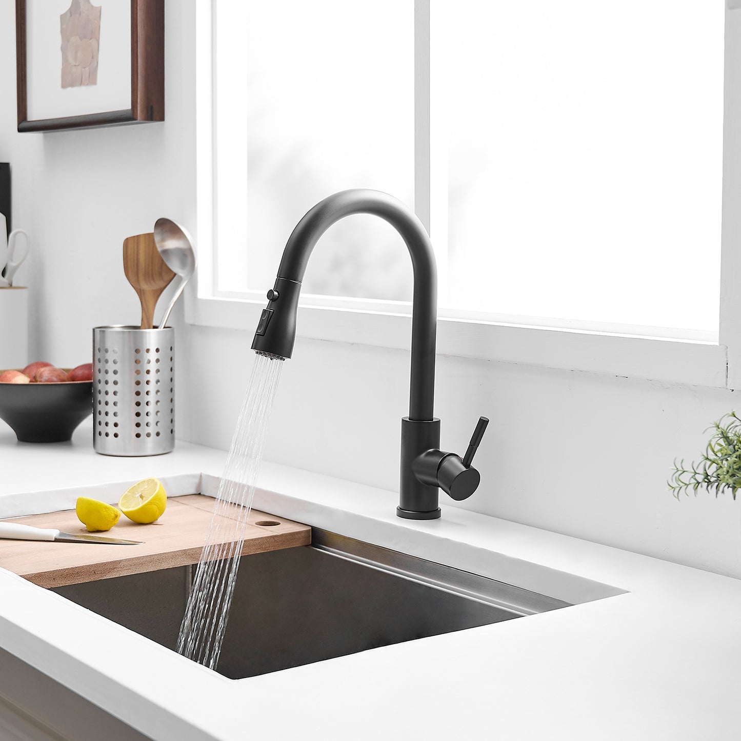 - Stainless Steel Black Kitchen Sink Faucet with Pull Out Sprayer