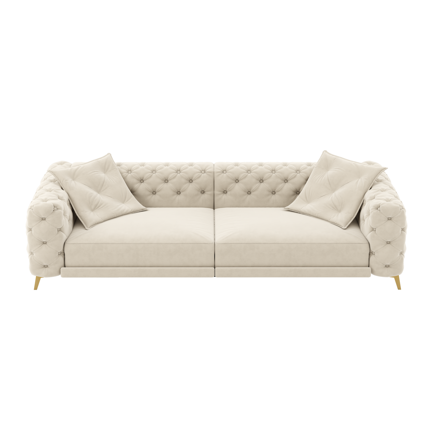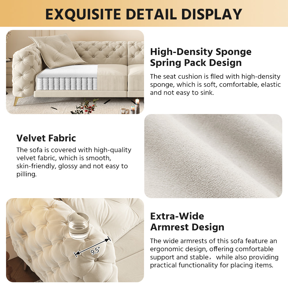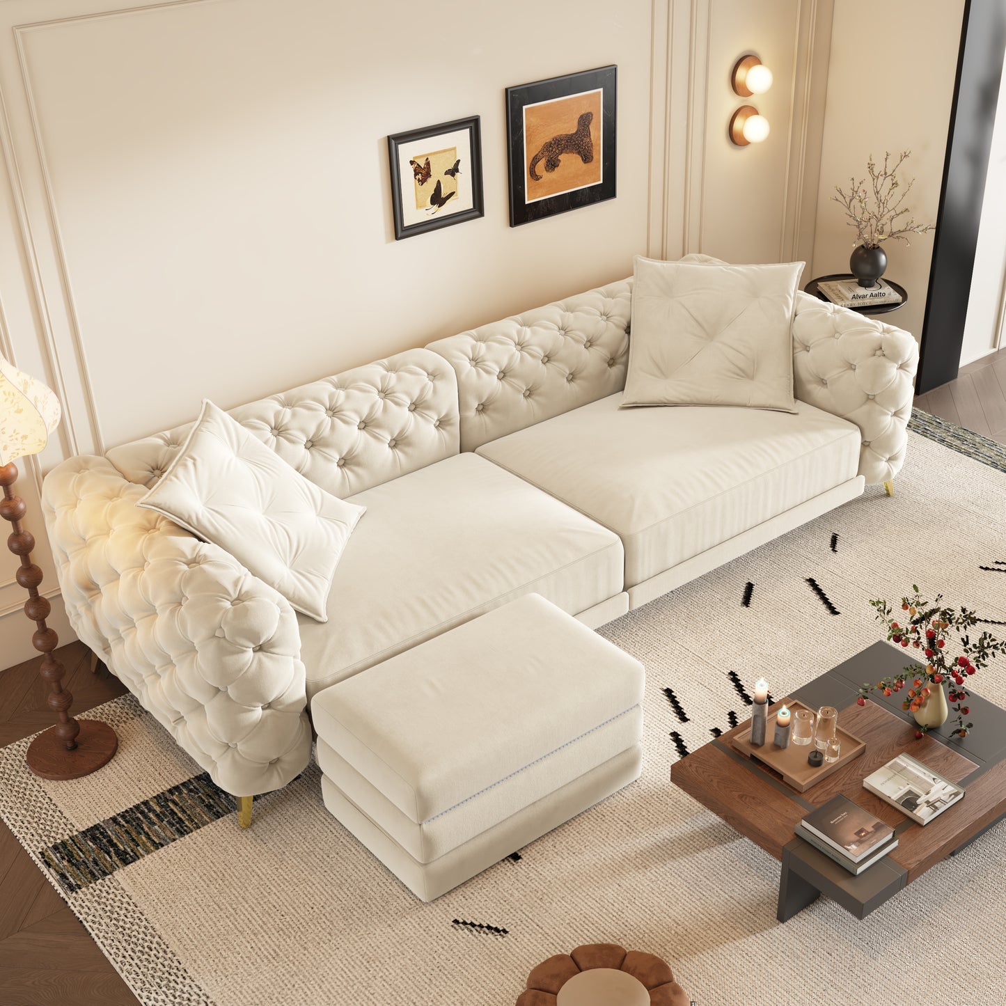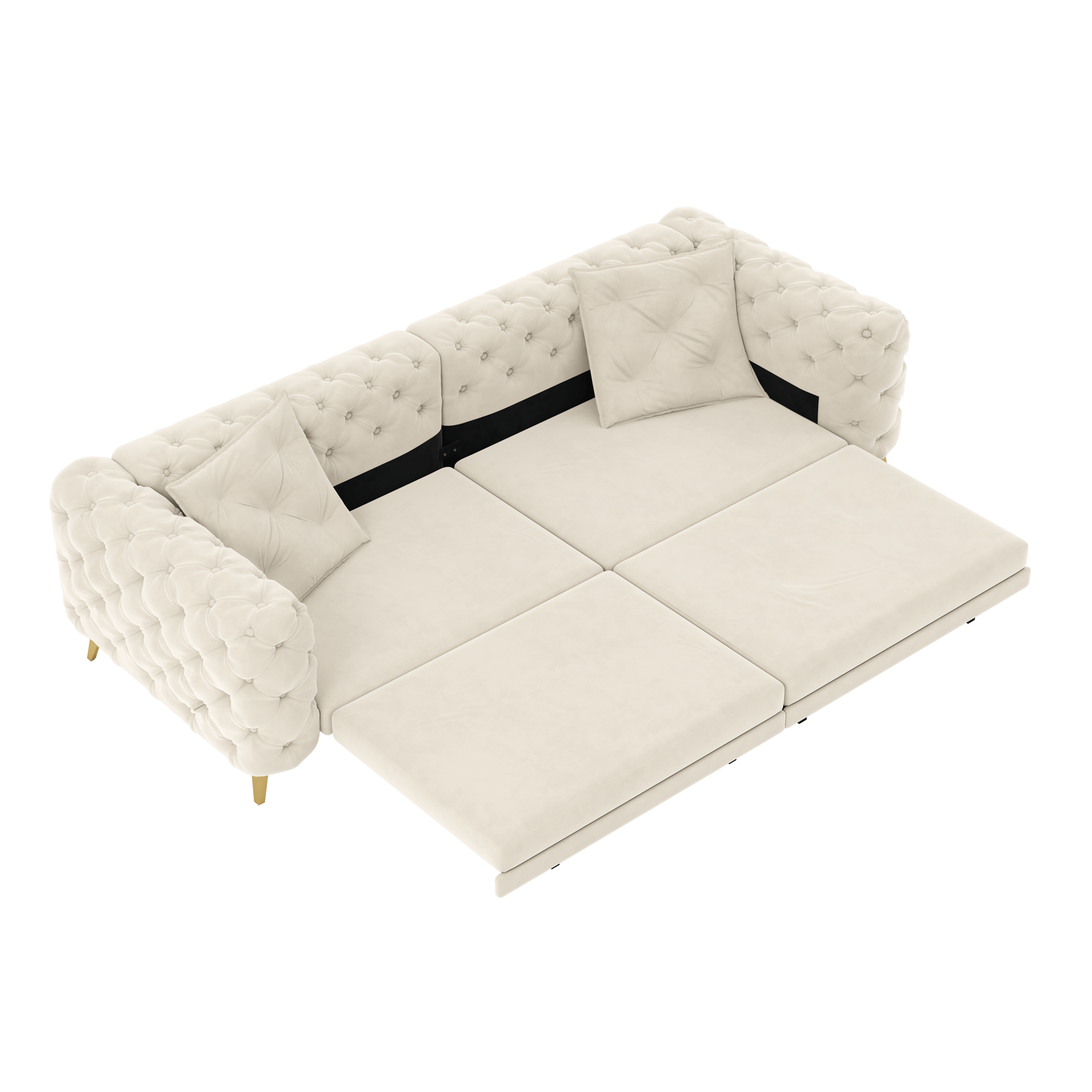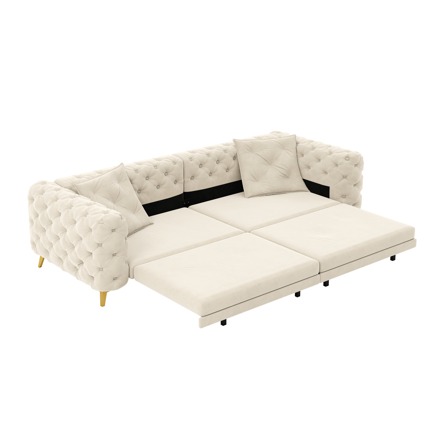 97.7' 3-in-1 Convertible Sleeper Sofa, 28.4' Deep Seat Pull Out Sofa Bed,Button Tufted Modern Sofa, 4-Seater Couch with Movable Ottoman for Living Room, Small Space, Apartment, Office, Bedroom,Beige