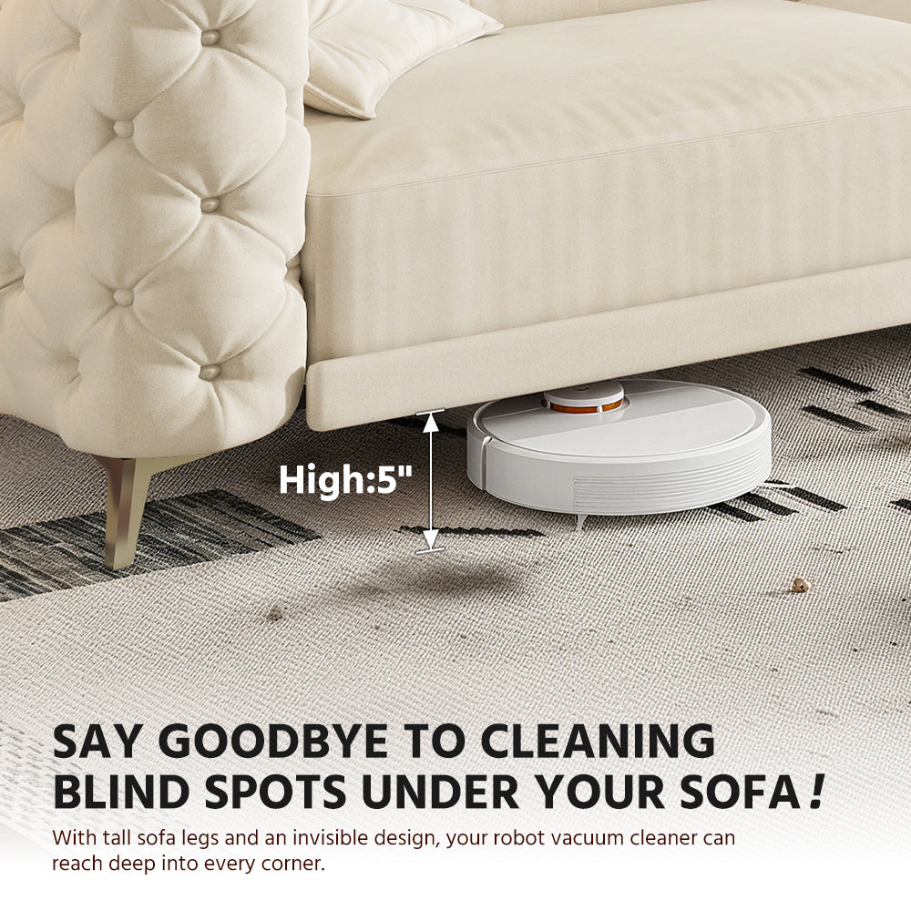 - Invisible sofa legs design:The invisible sofa legs design is adopted, and the appropriate height and space are reserved at the bottom of the sofa, so that the robotic vacuum cleaner can easily enter the area under the sofa for cleaning, without manual efforts to clean the hard-to-reach corners at the bottom, greatly simplifying the cleaning process and improving the convenience of cleaning.