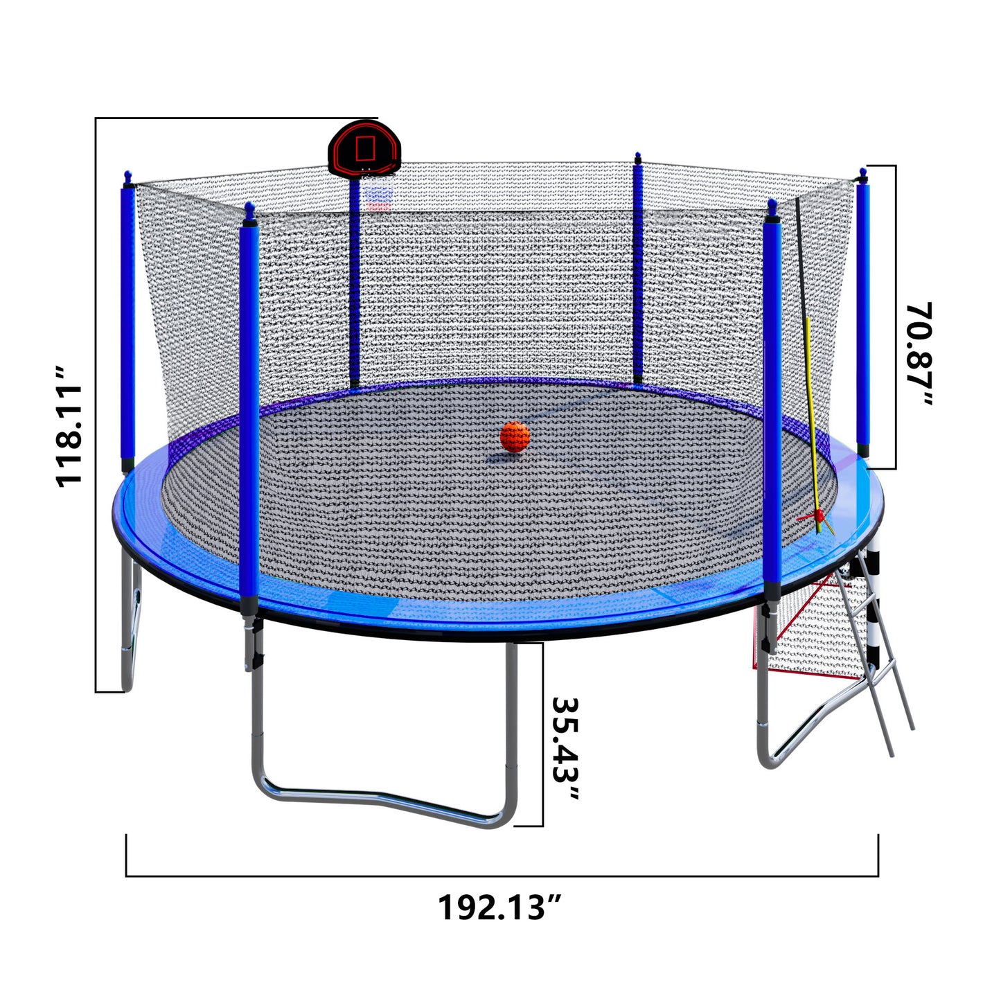 Blue 16FT Trampoline with Basketball Hoop, Pump, Ladder, Inner Safety Enclosure & Soccer Goal