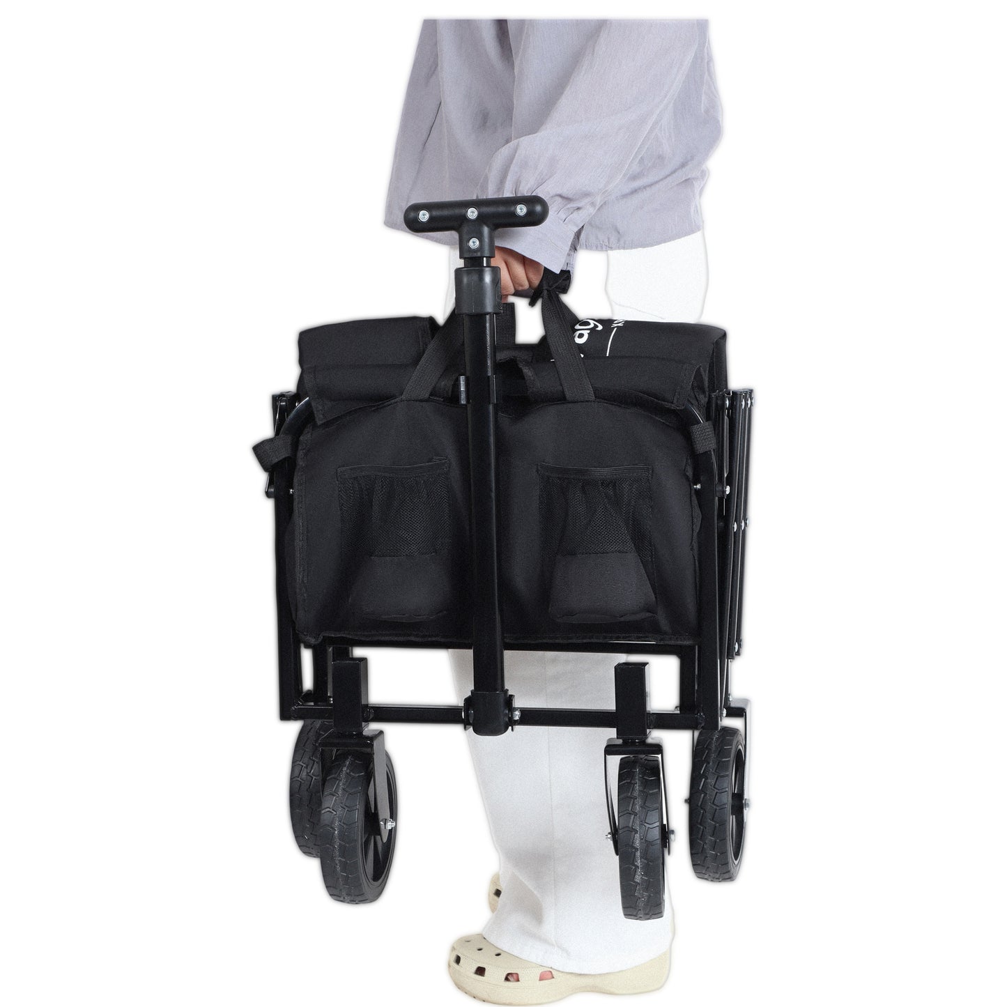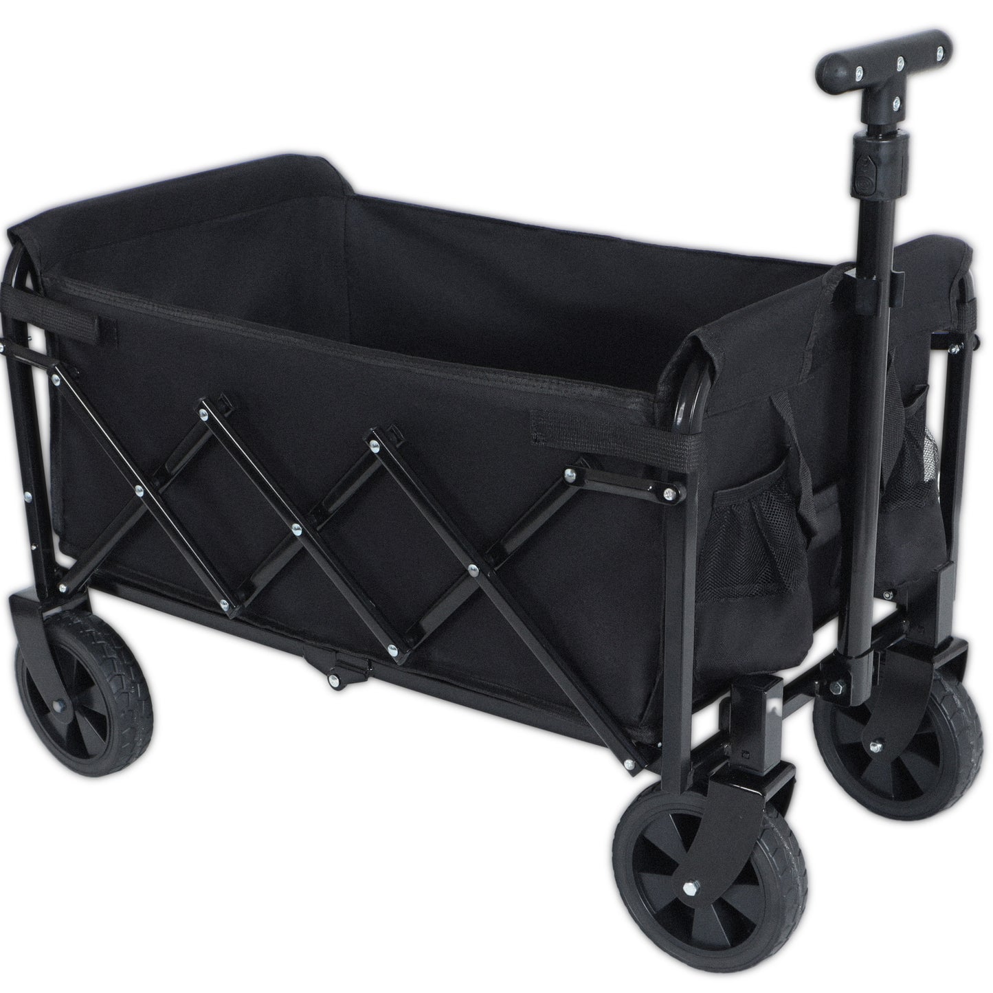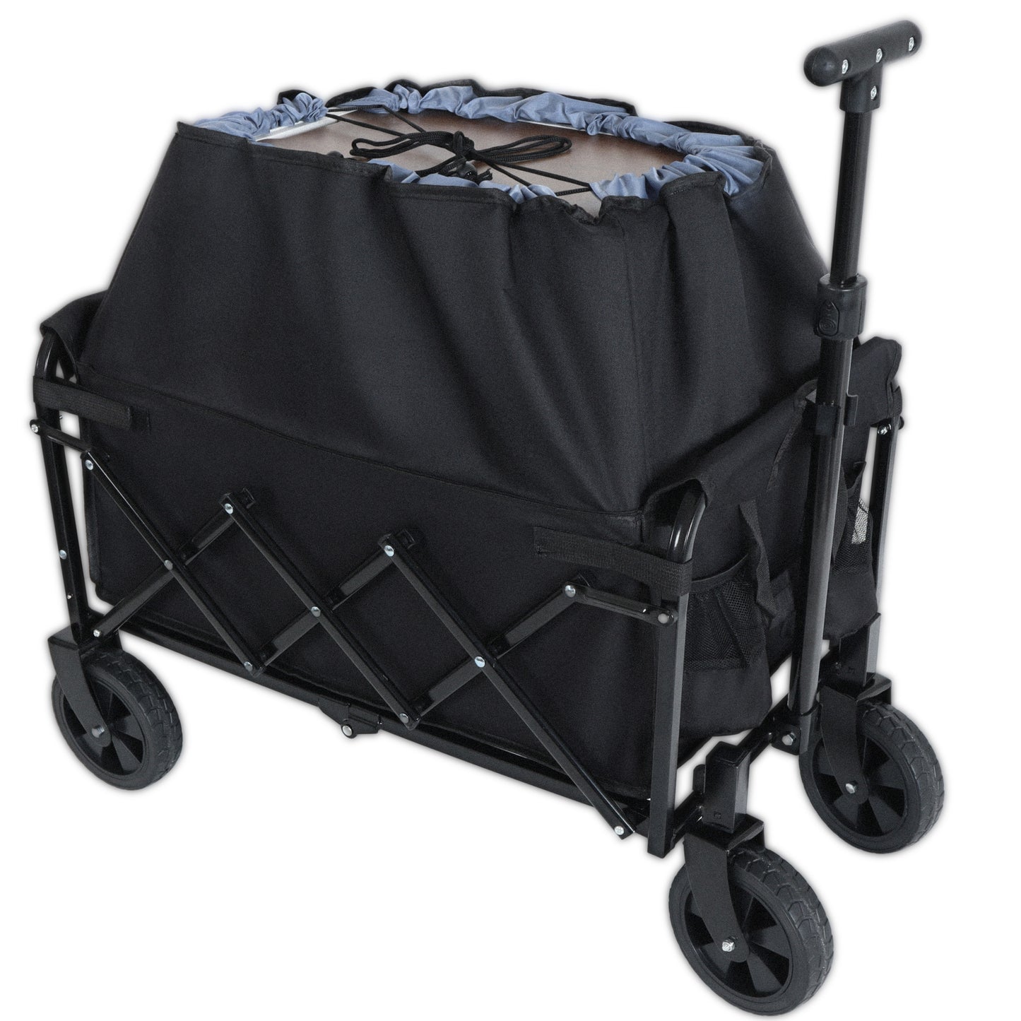 Expandable Dual-Layer Utility Wagon with 100% Extra Space - 225lbs Grocery Cart for Camping, Shopping, Sports, Gardening, Fishing, Black