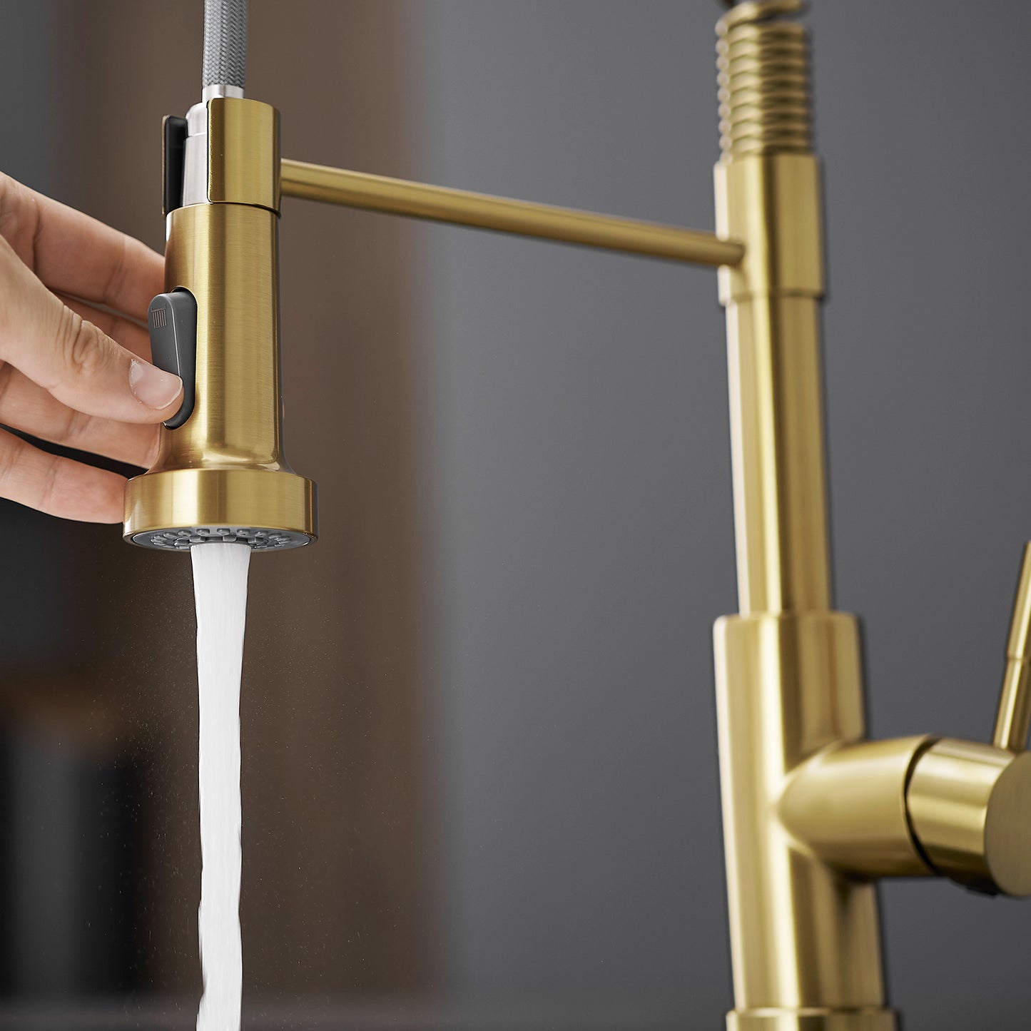 Kitchen Faucet with Pull Down Sprayer Brushed Gold Stainless Steel Single Handle Pull Out Spring Sink Faucets