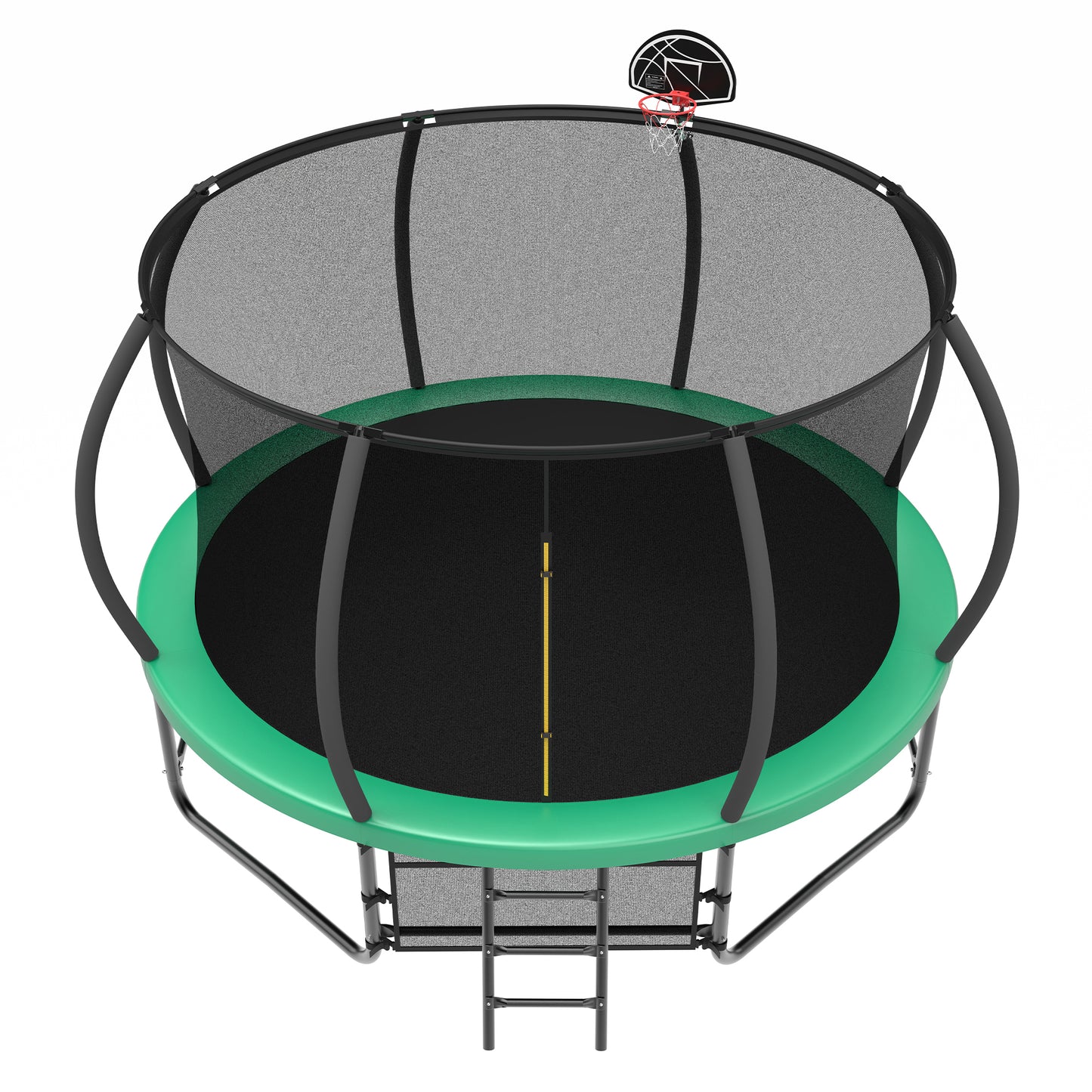 - Solid Structure-8 foam padded poles to support UV-proof safety trampoline enclosure net for maximum safety while jumping. Heavy duty 3-step galvanized steel ladder offers convenient maneuverability in and out of the trampoline.