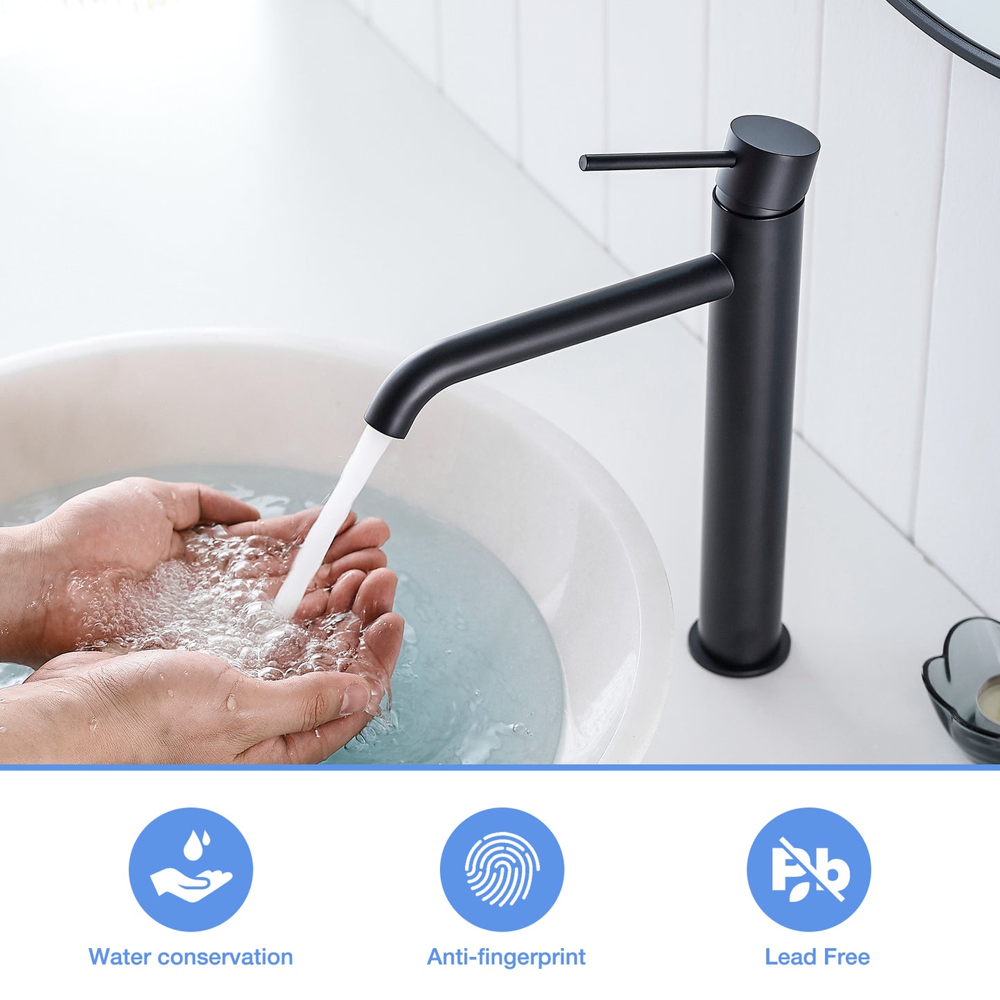 Black Tall Bathroom Faucet Black Faucet for Bathroom Sink, Single Hole Bathroom Faucet Modern Single Handle Vanity Basin Faucet