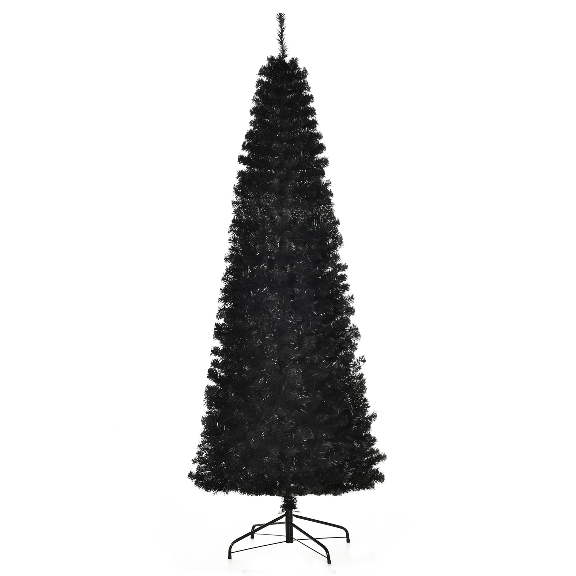 HOMCOM 7ft Pencil Christmas Tree, Unlit Artificial Christmas Tree Slim Douglas Fir Xmas Tree with Realistic Branches, Halloween Tree with 818 Tips, Black