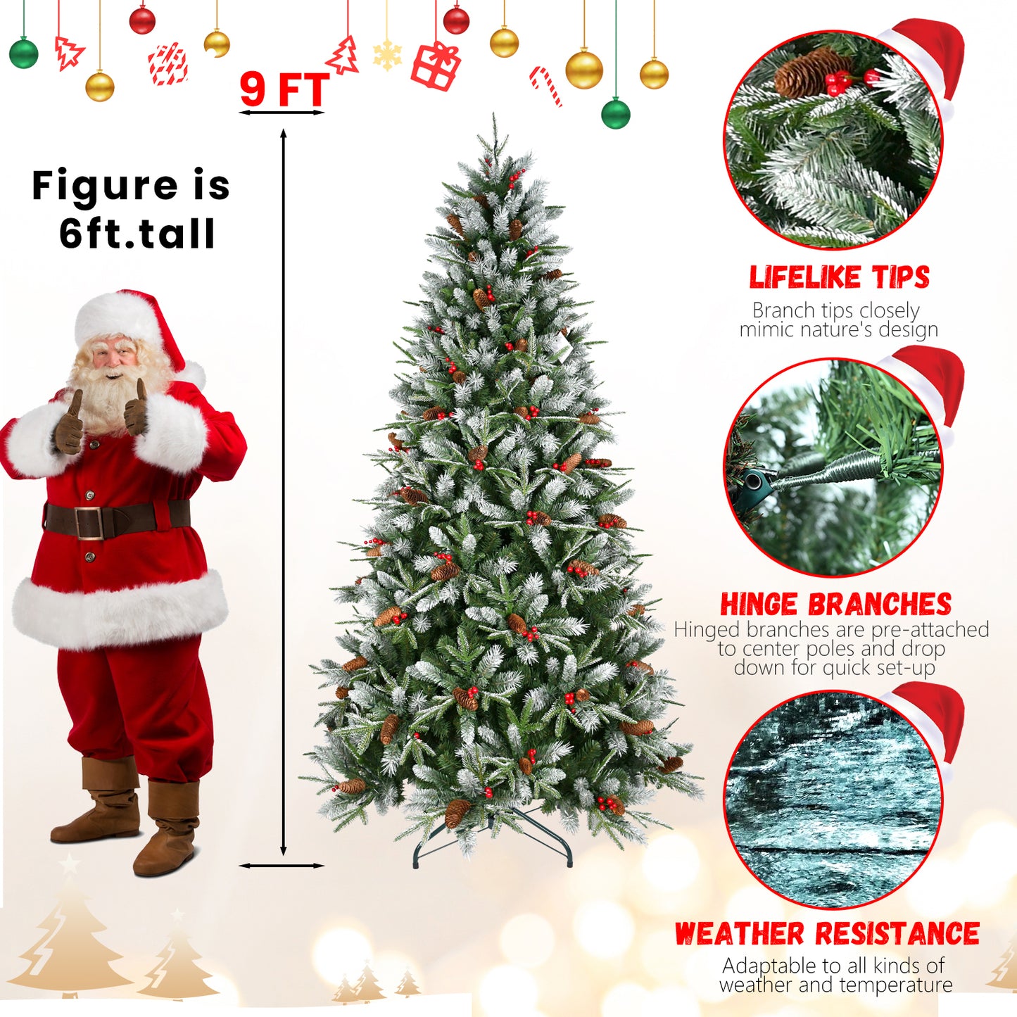 7FT Christmas Tree with 2178 Tips, Red Berries & Pine Cones – Snow-Dusted PE+PVC Branches, Hinged Design for Easy Setup, Sturdy Metal Stand – Full, Natural Holiday Tree Decoration
