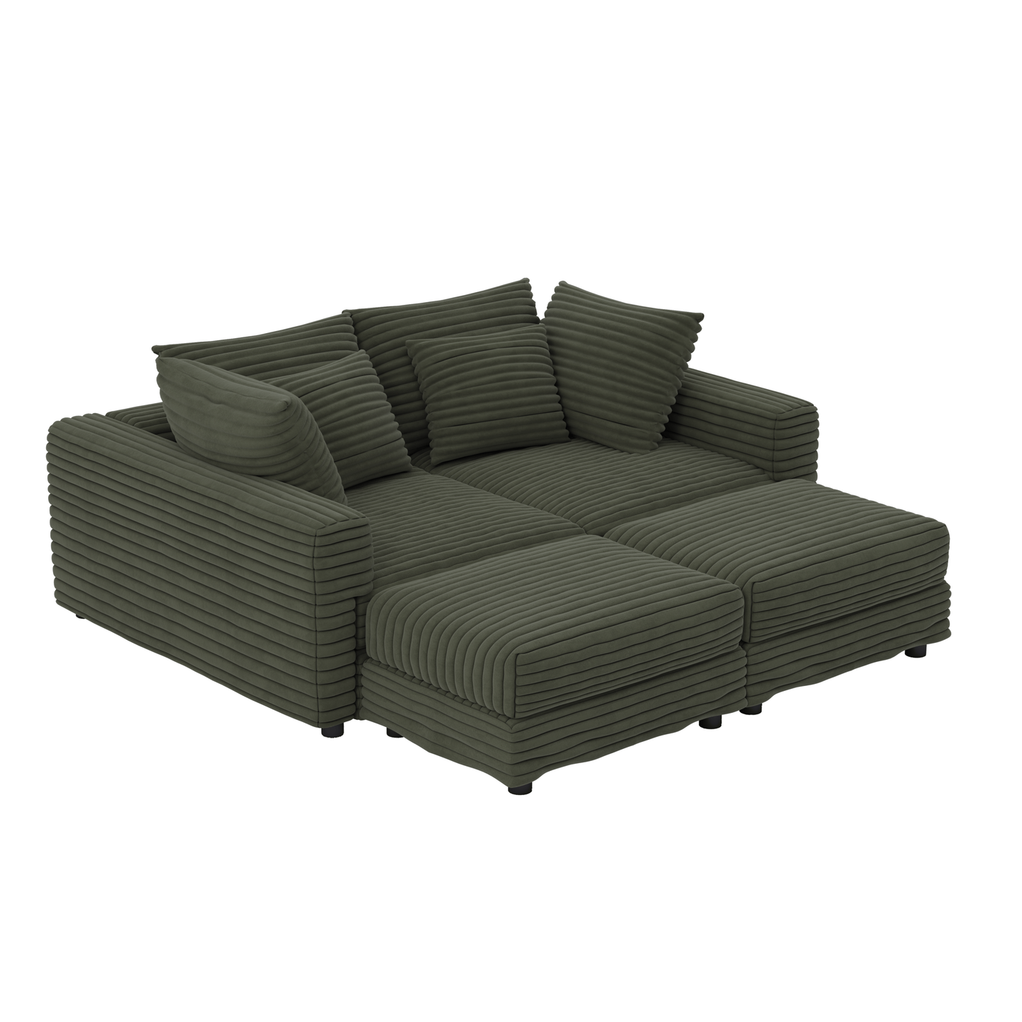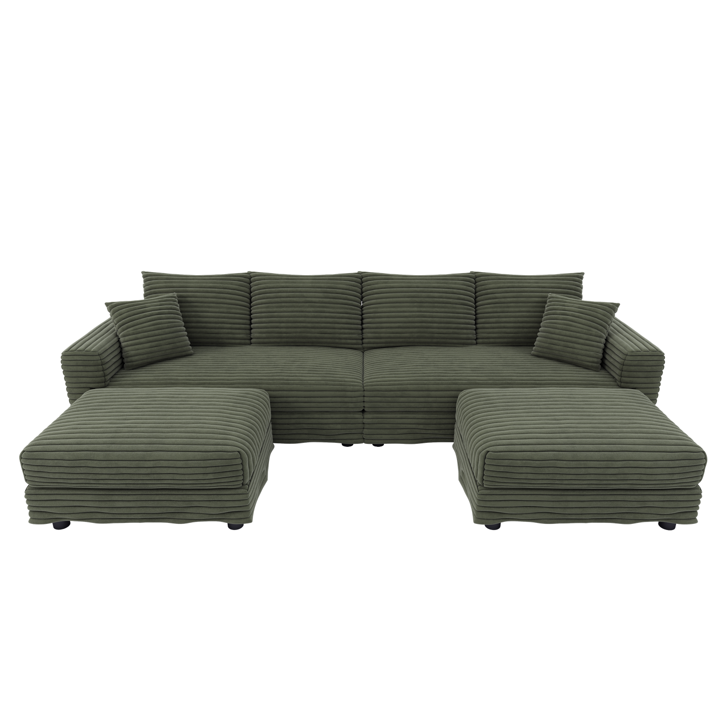 104.3 ' Plush Corduroy 4-Seat Sofa, Modern Comfy Upholstered Sofa Cloud Couch, Deep Seat Couches with Soft Pillows and 2 Ottomans, Convertible Sofa Lounge Chair, for Living Room,Apartment,Office,Green